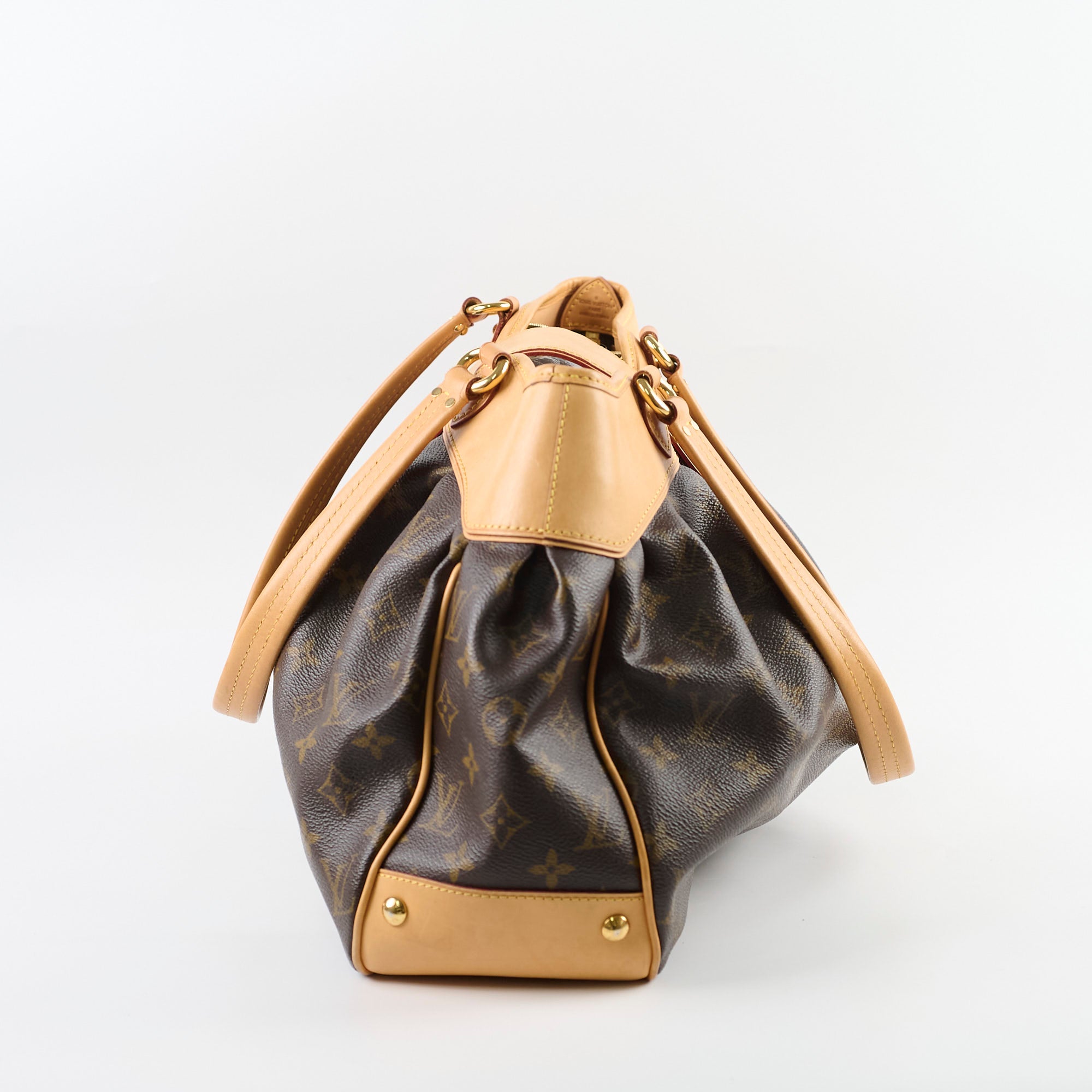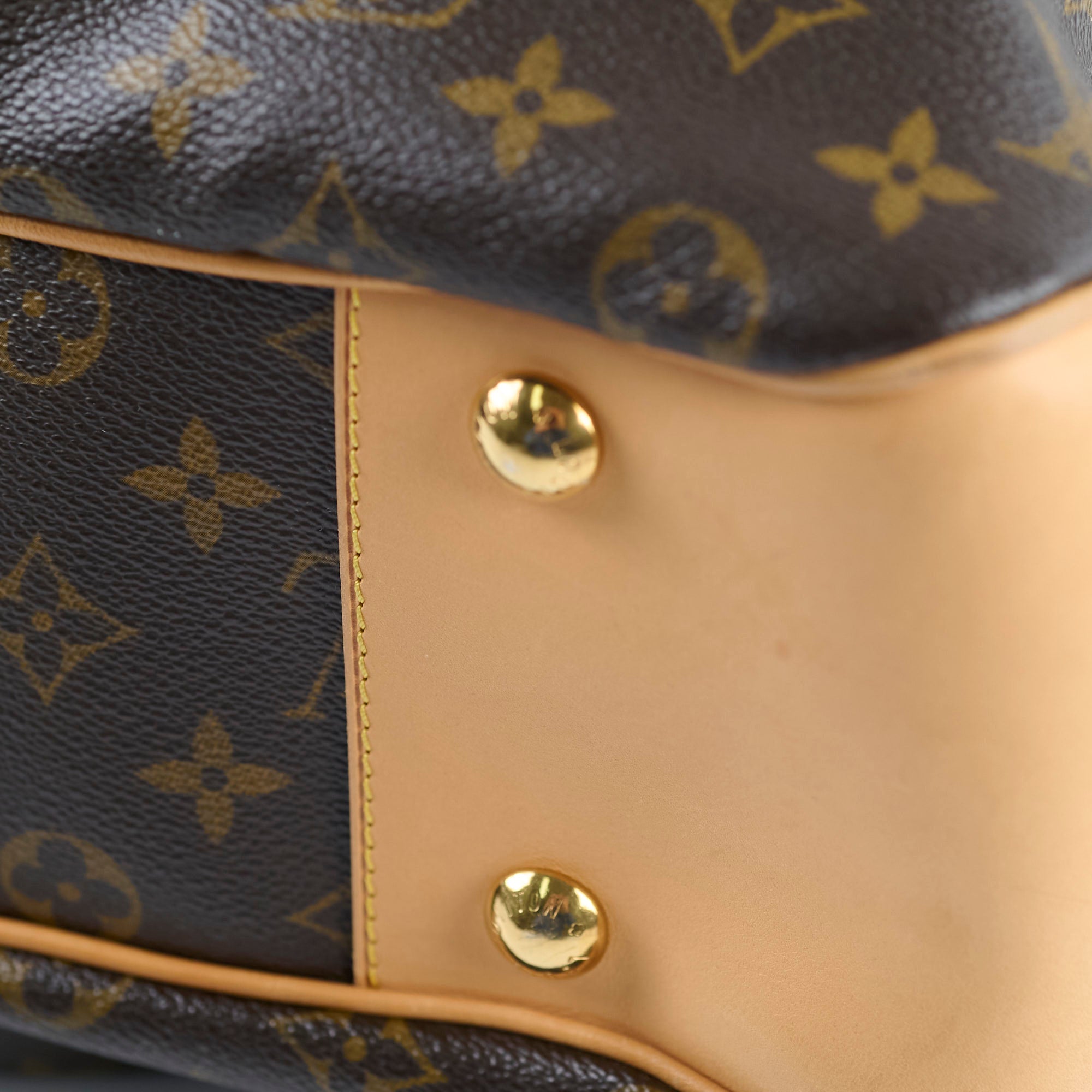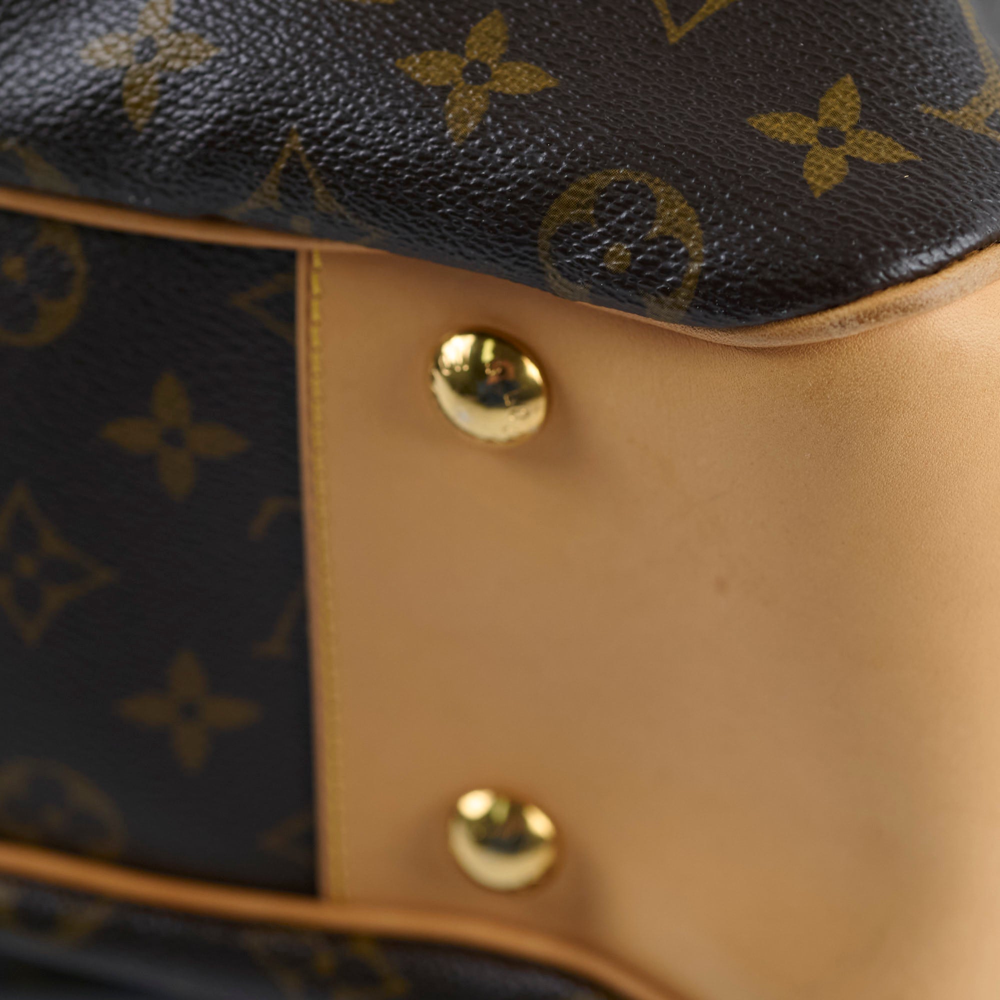 Watermarks & minor darkening on vachetta, hairline scratches on hardware, rubbing on corners, clean inside & out