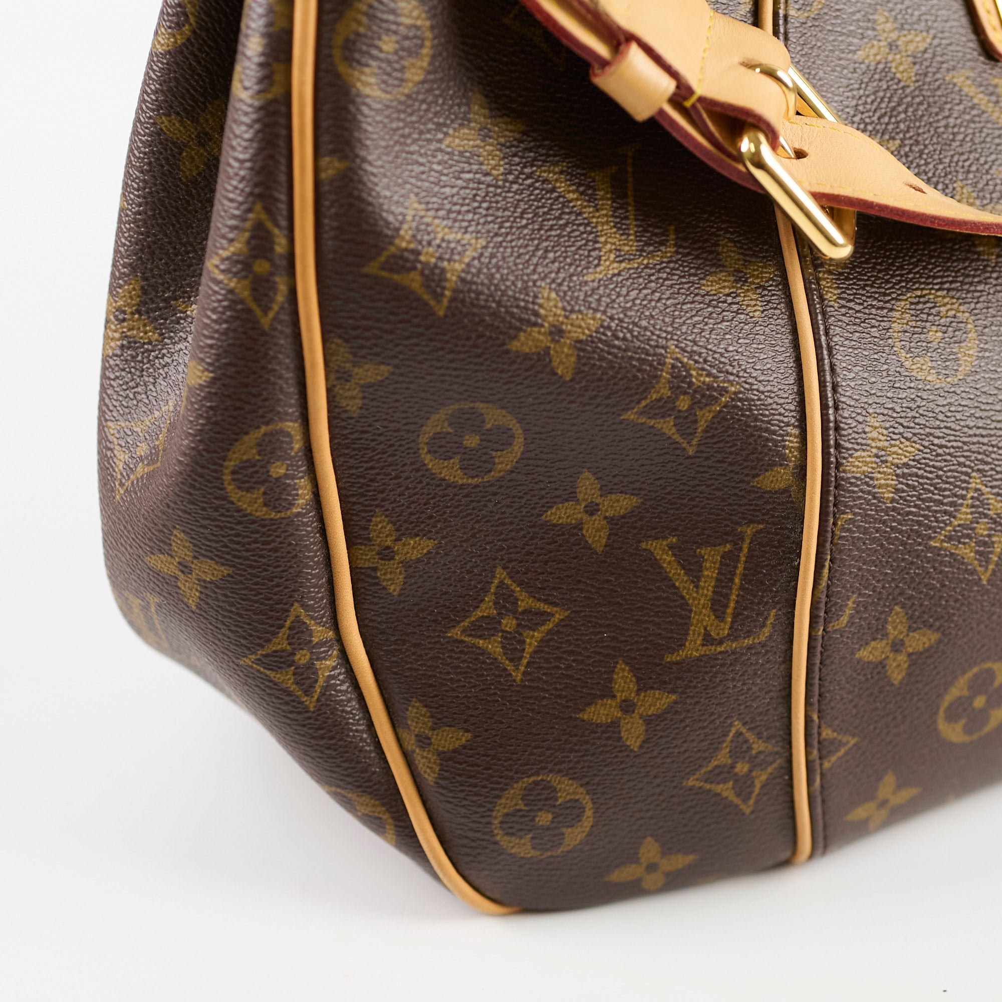 Rubbing on corners, light darkened on vachetta leather, scratches on hardware