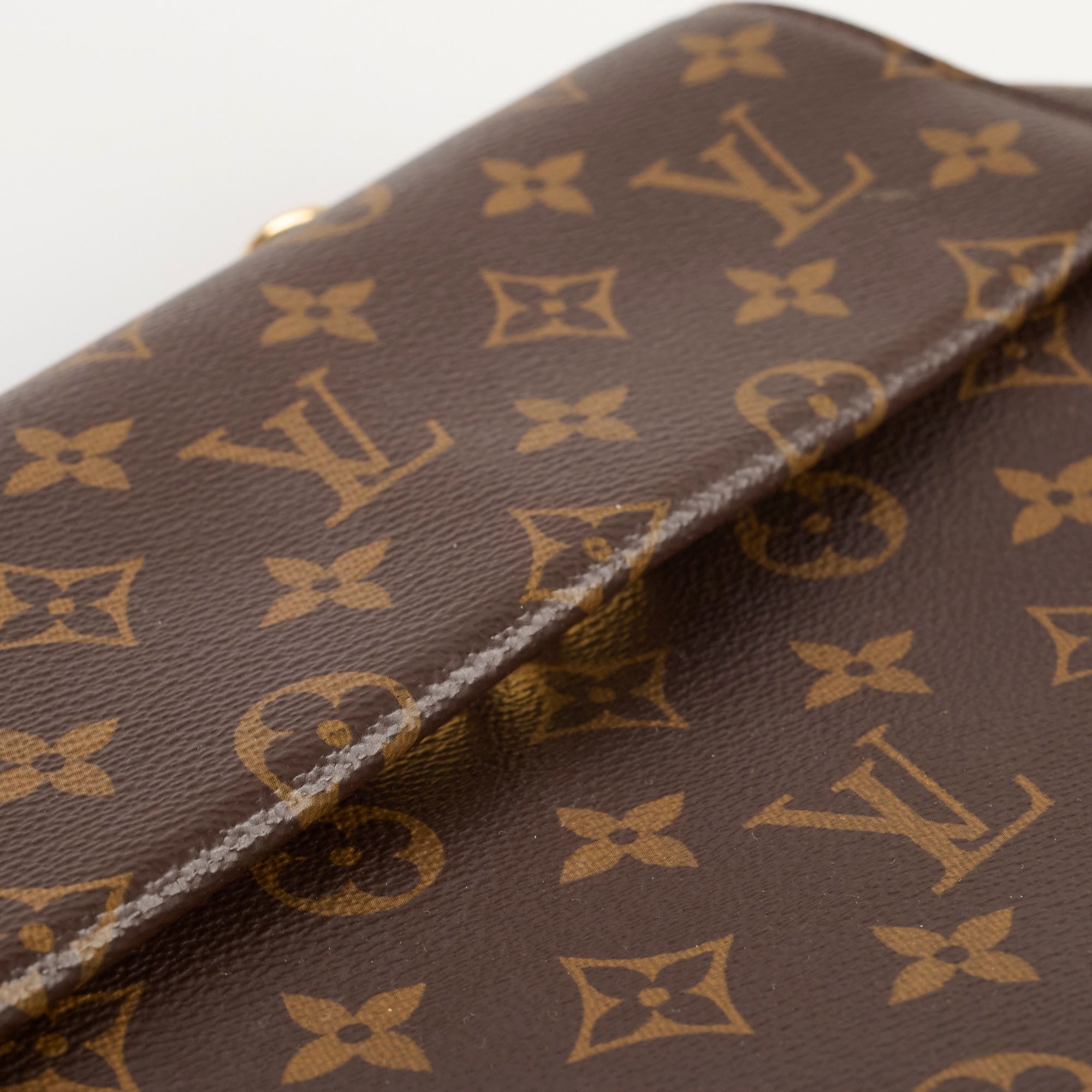 Scratches & minor tarnishing on hardware, minor stains interior, soften structure, light marks & darkening on vachetta