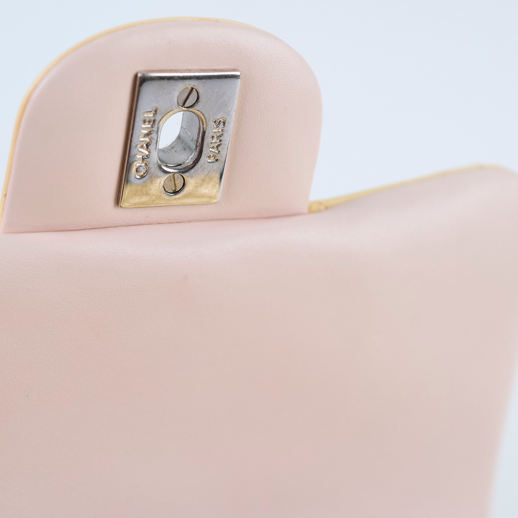 Minor stains on leather(front, bottom and back), scratches on hardware, creasing on sides, light creasing on interior leather