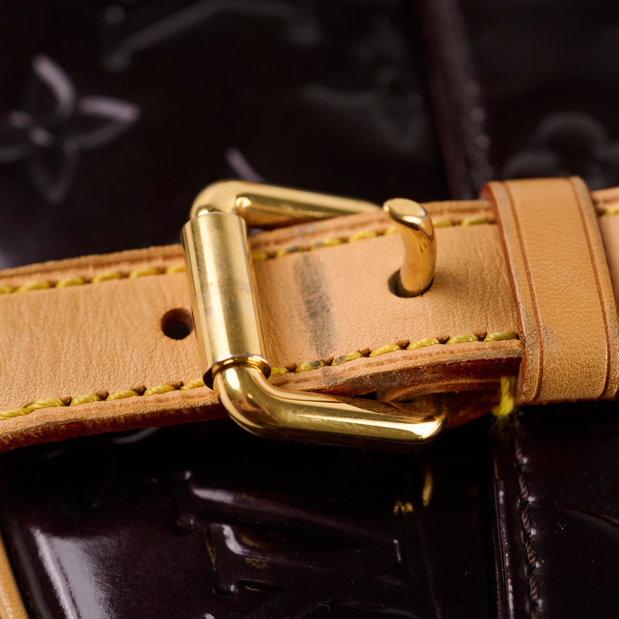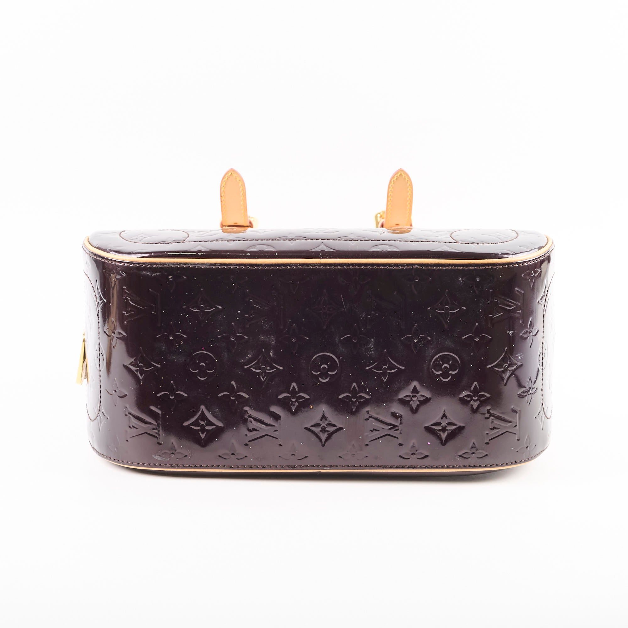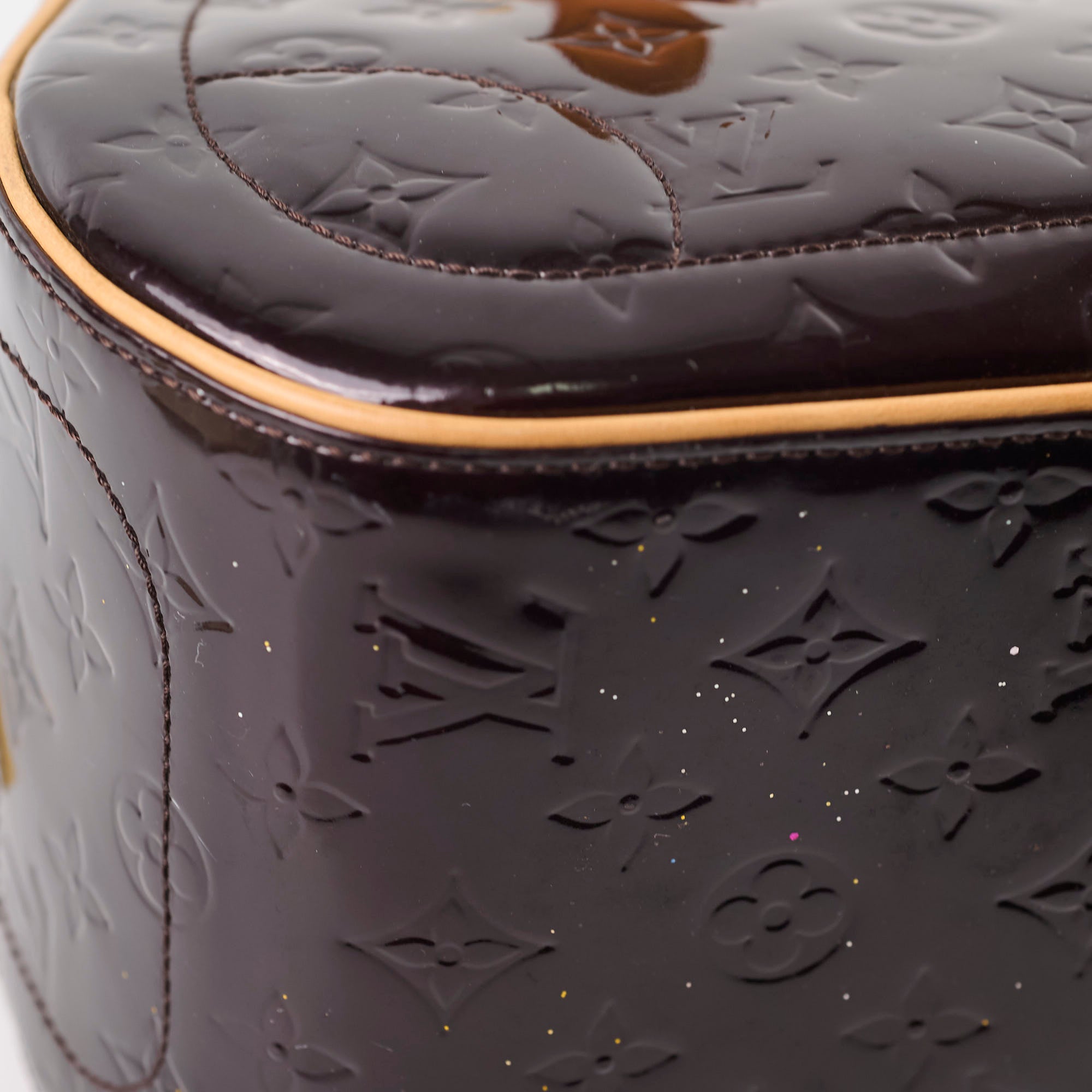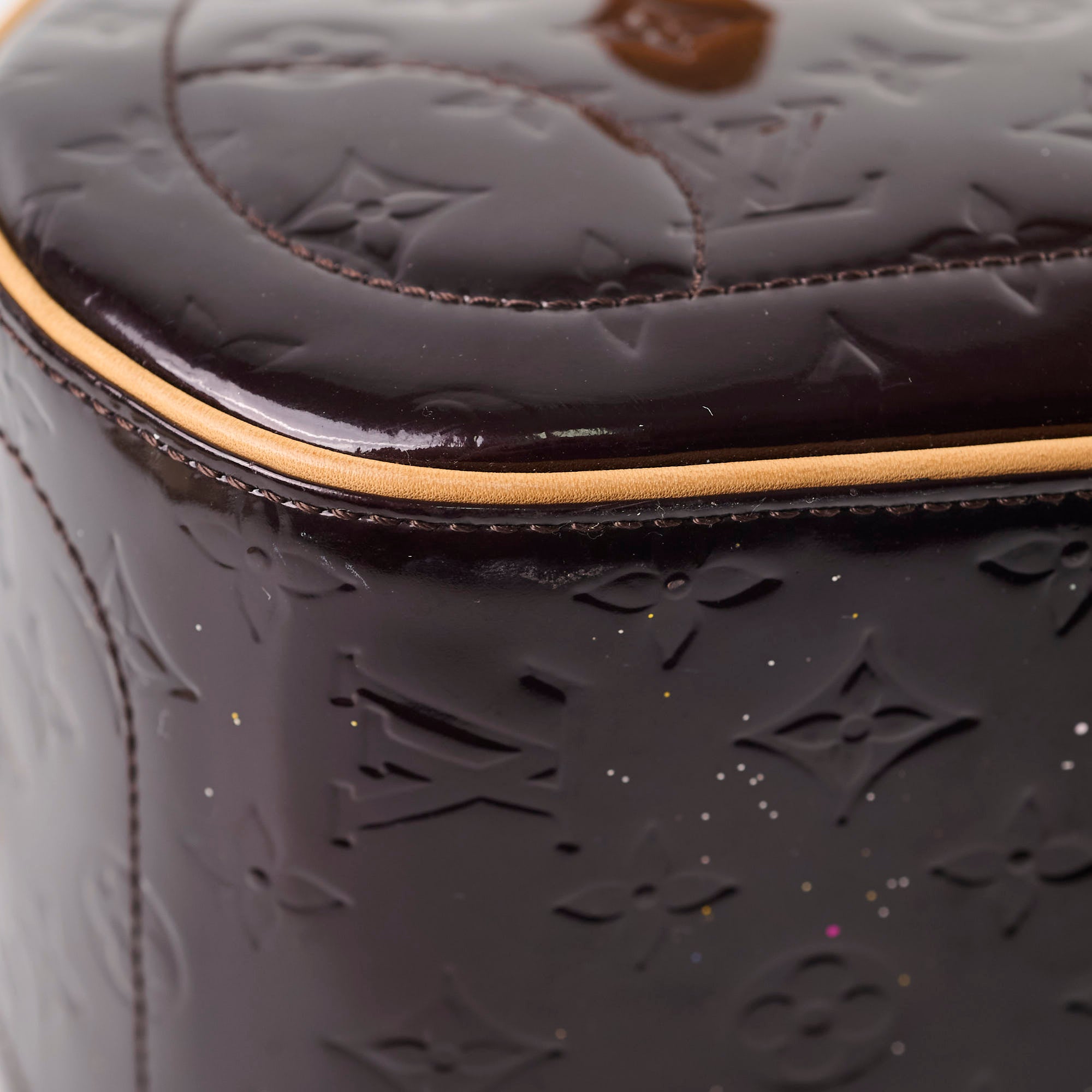 Light rubbing on corners, hairline scratches on hardware, minor darkening & marks on vachetta, glitter on base