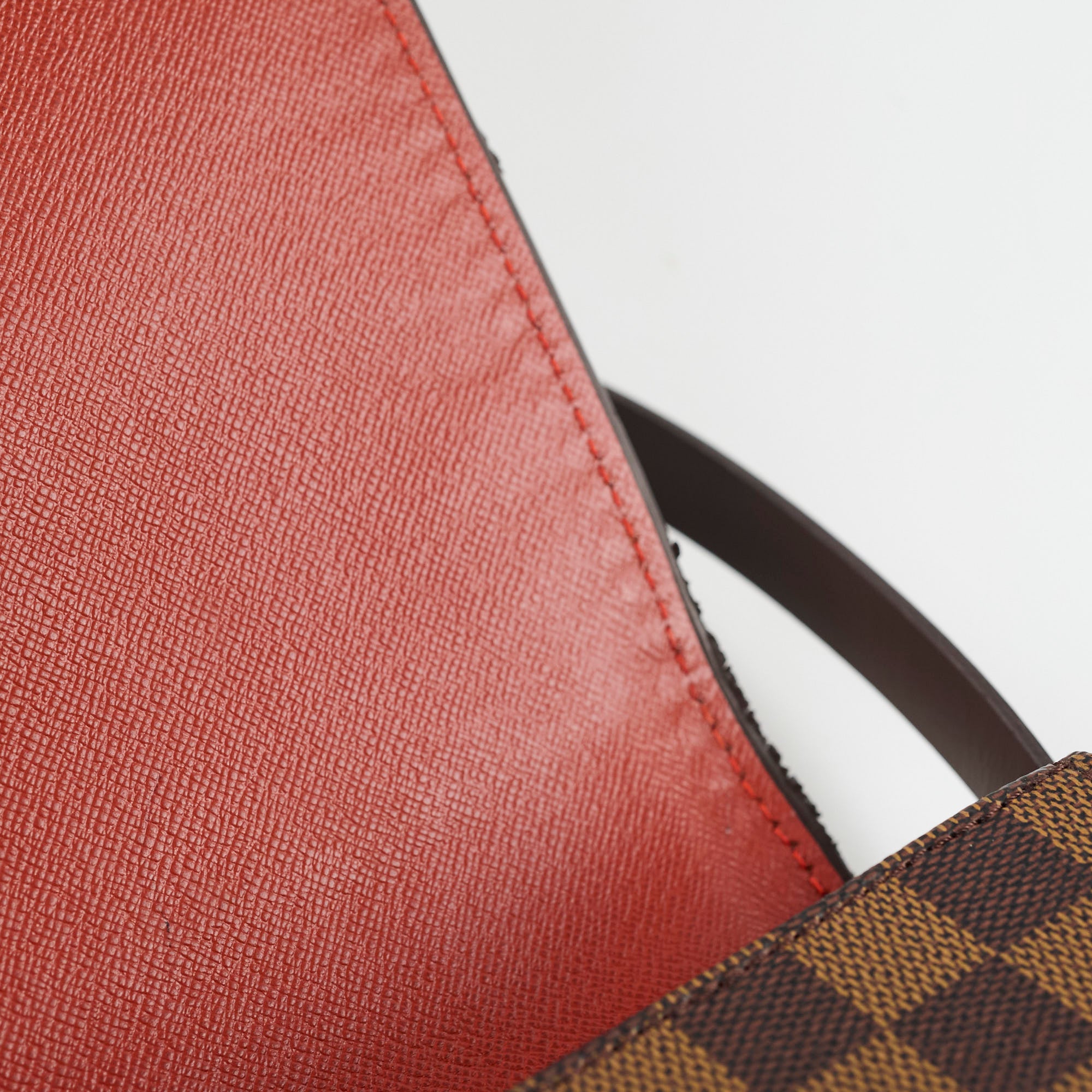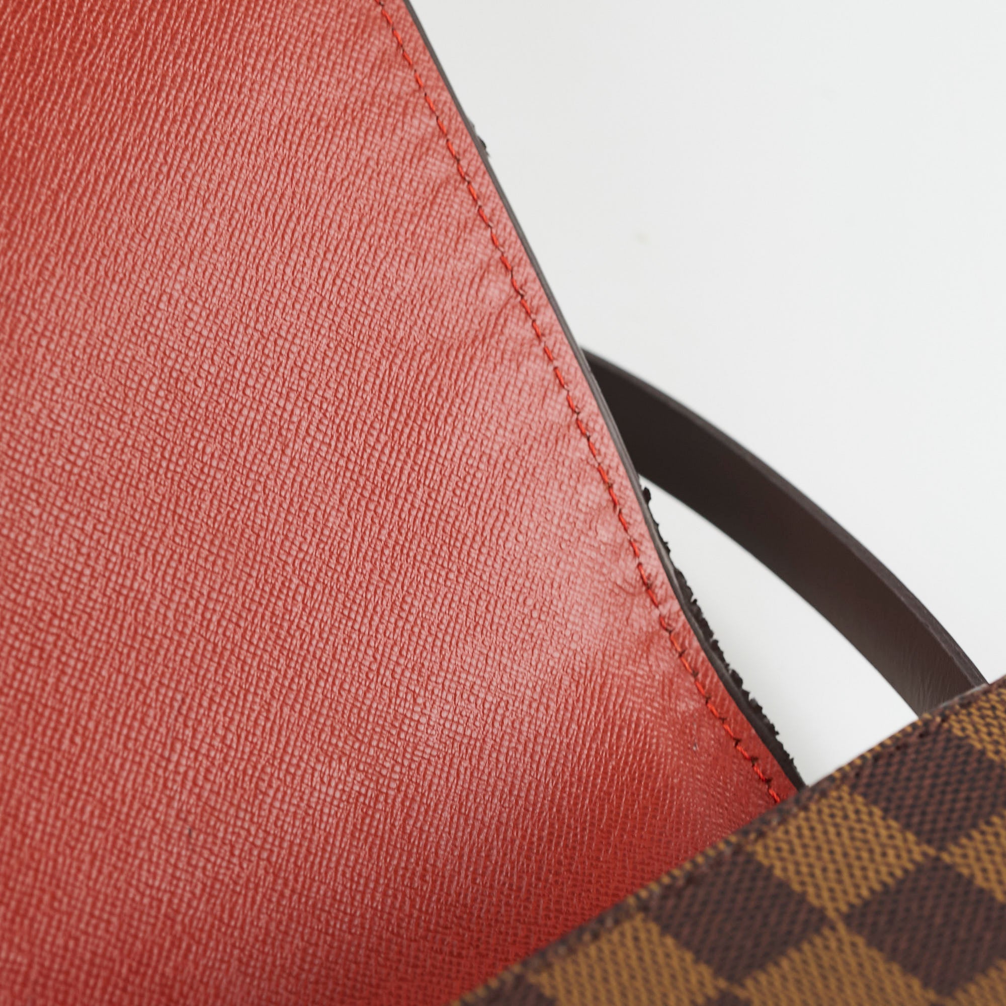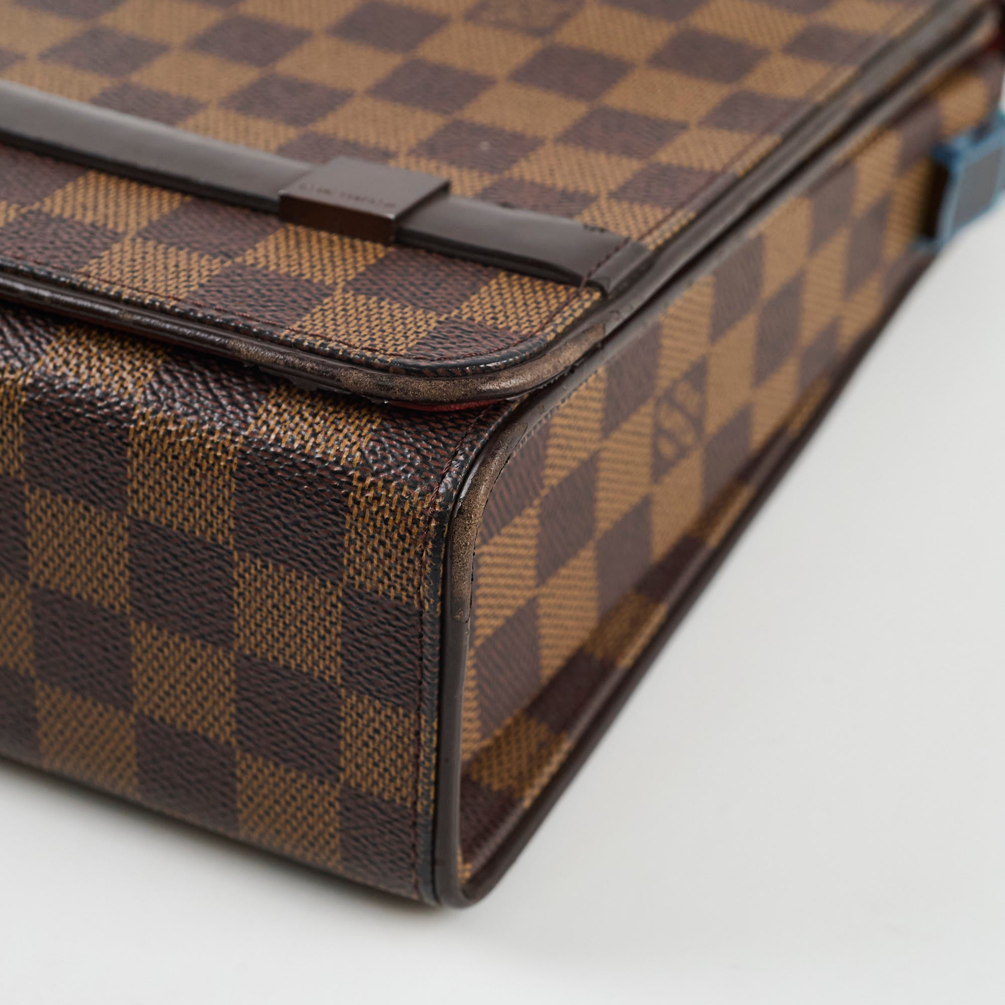 Wear on edge of flap, scratches on leather