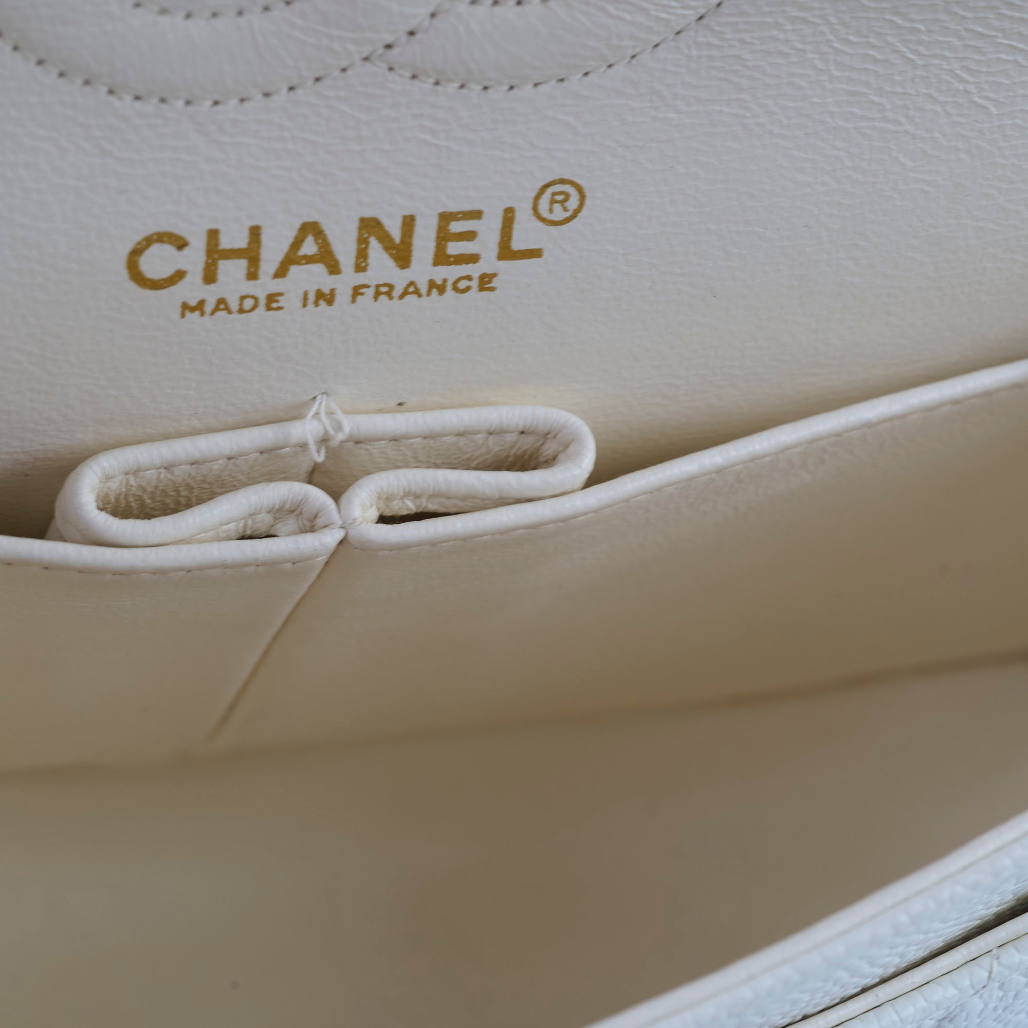 Interior discoloration, thread slight loosen near the lipstick pocket, corners free from rubbing, clean inside and out, excellent scructure