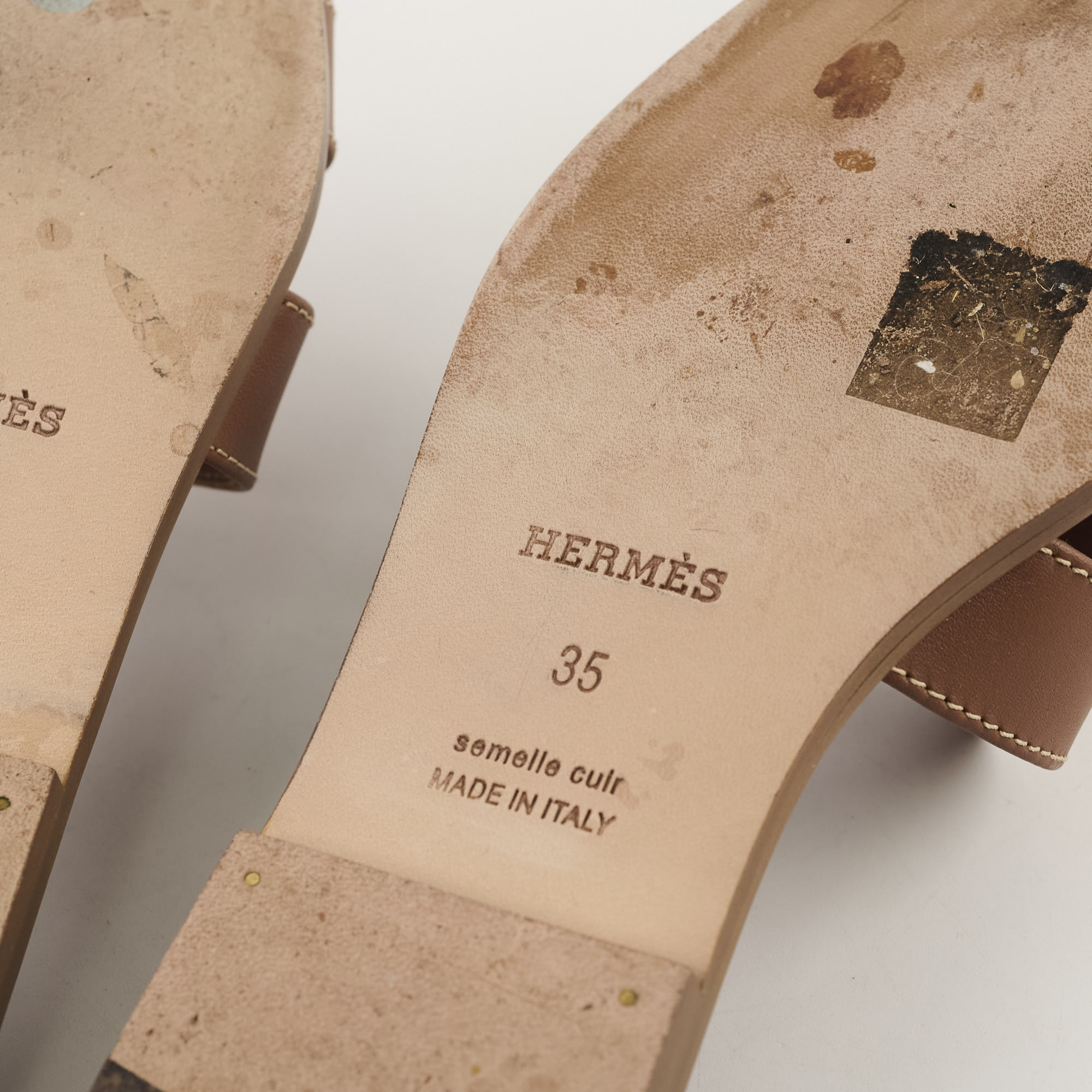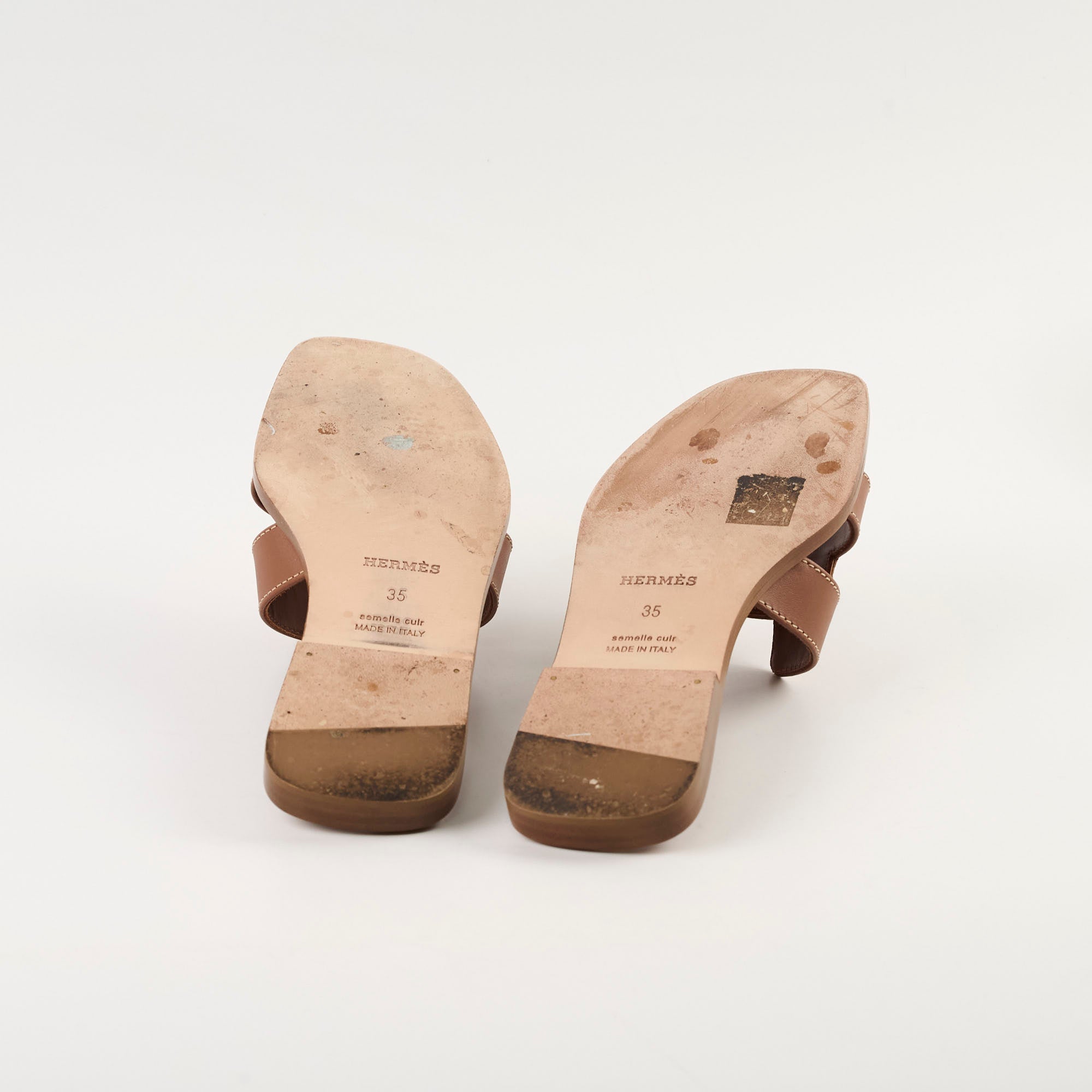 Signs of wear on sole, minor creasing on leather, light scuff
