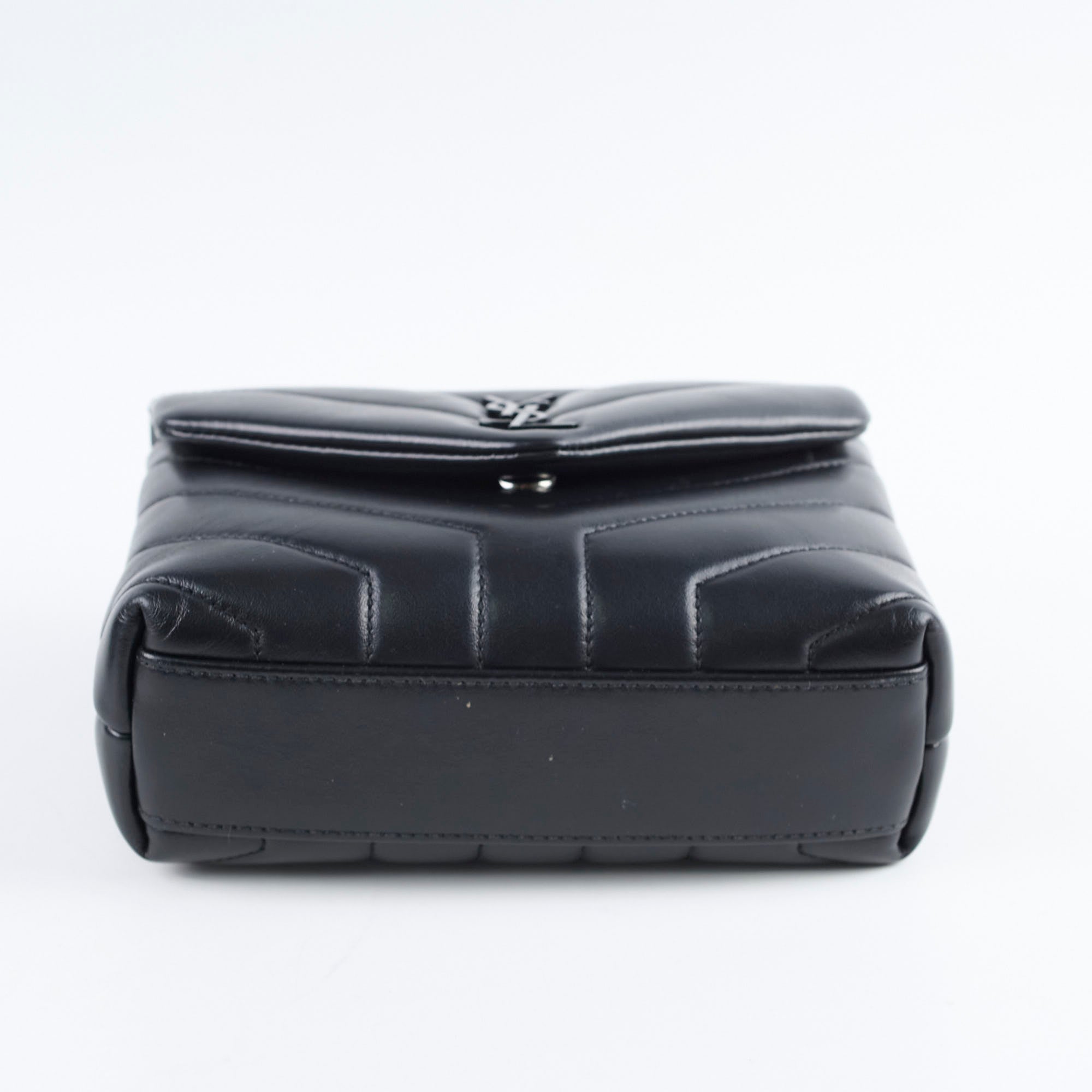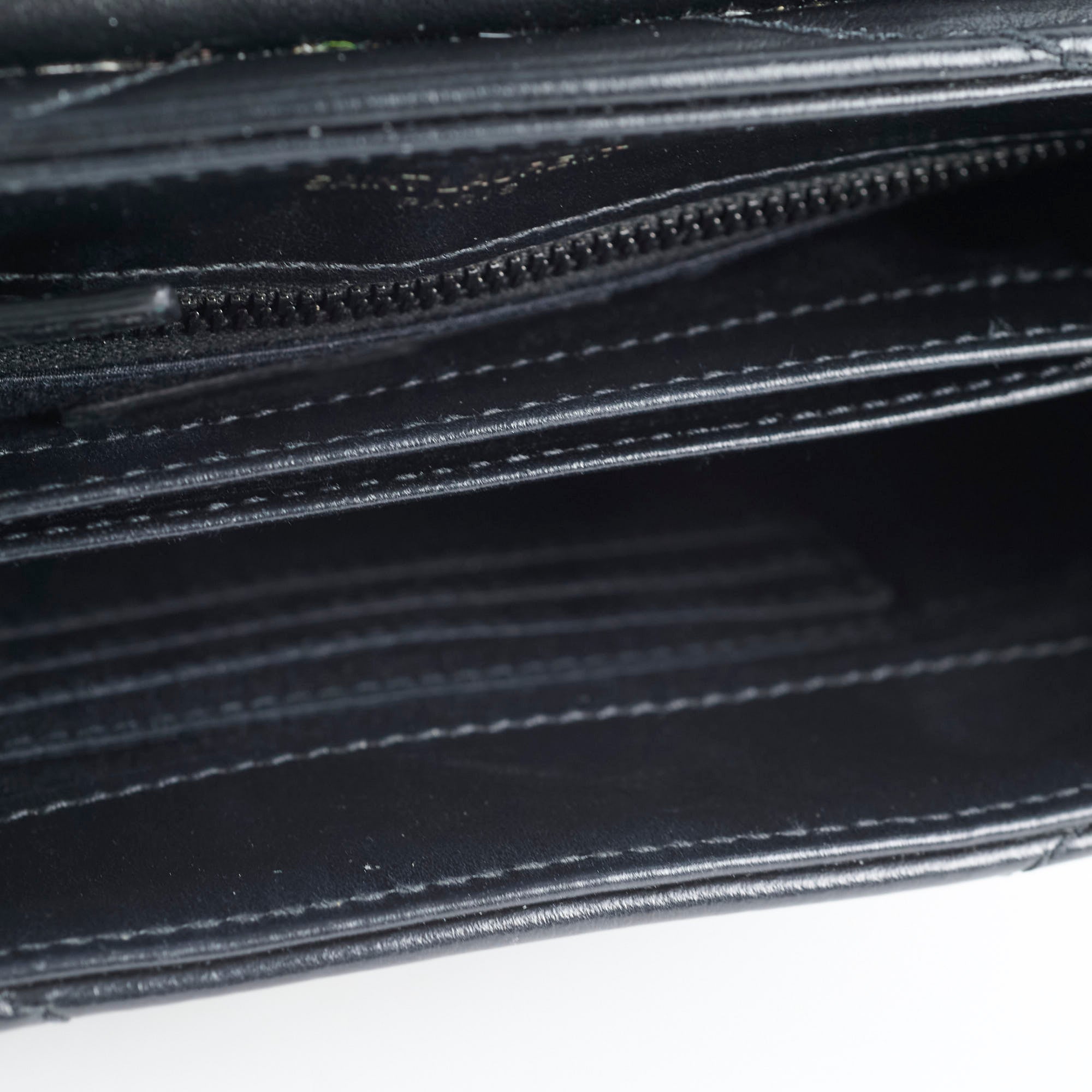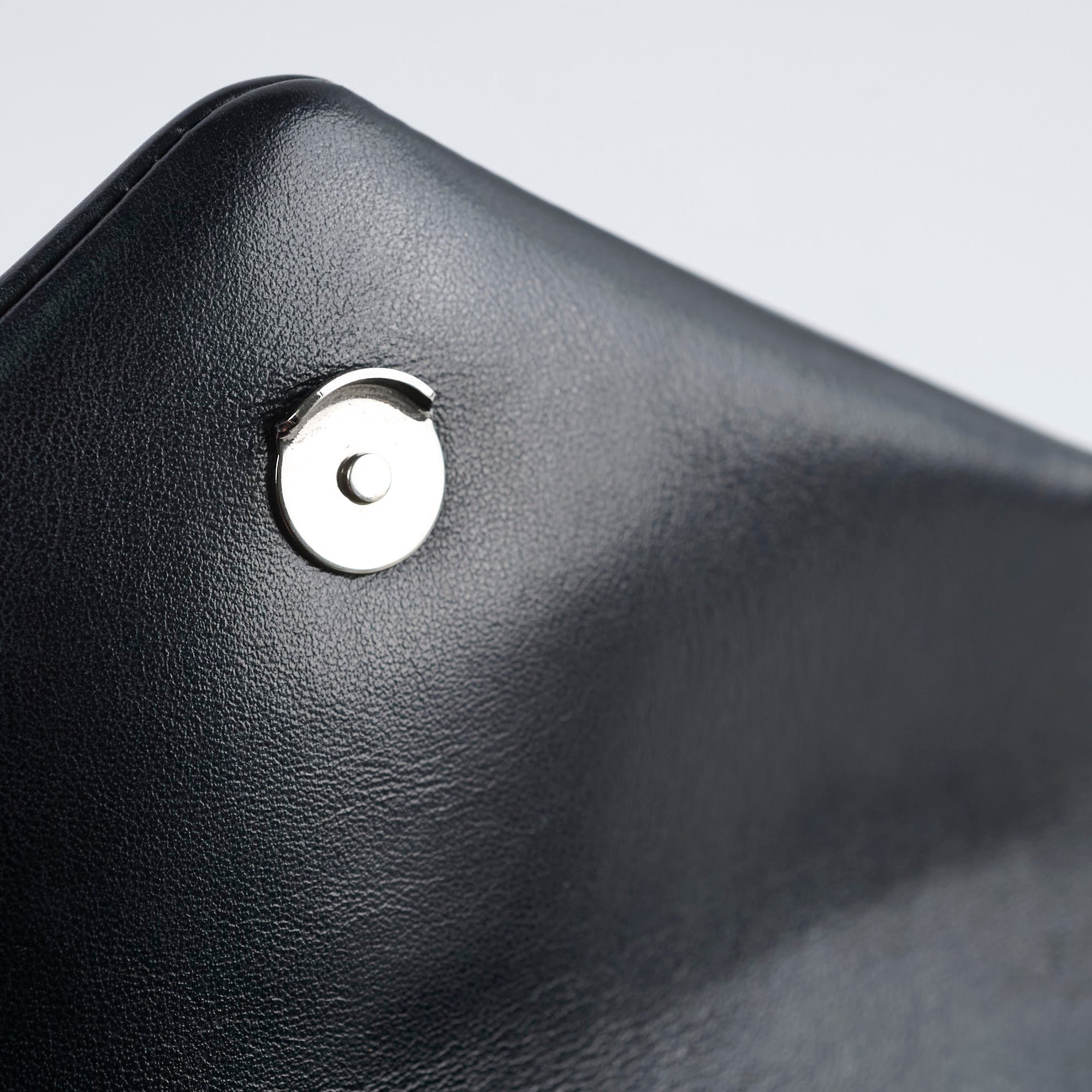 Tiny rubbing on one corner, faint hairline scratches on hardware, leather in excellent condition, clean inside out