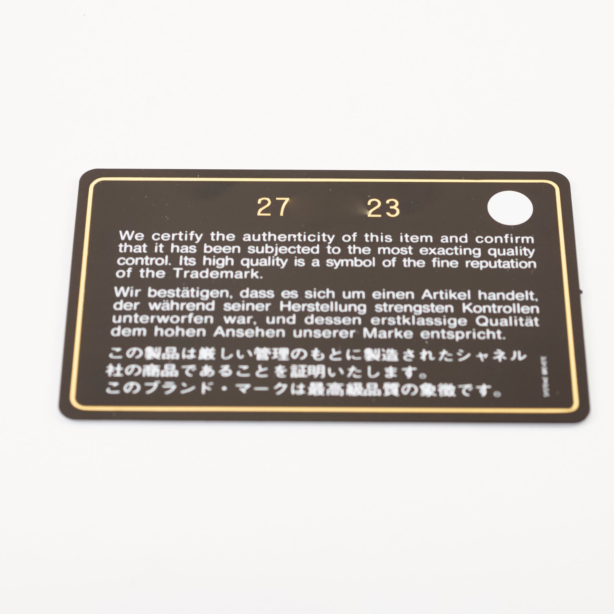 Authenticity Card, Dustbag