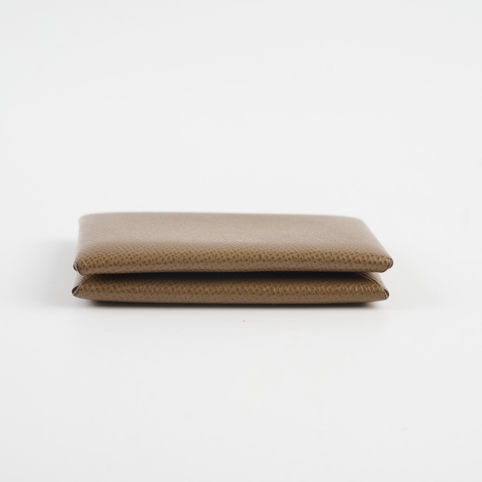 Rubbing on corners and interior edge, shiny patina on leather, light scratches and tarnishing on hardware