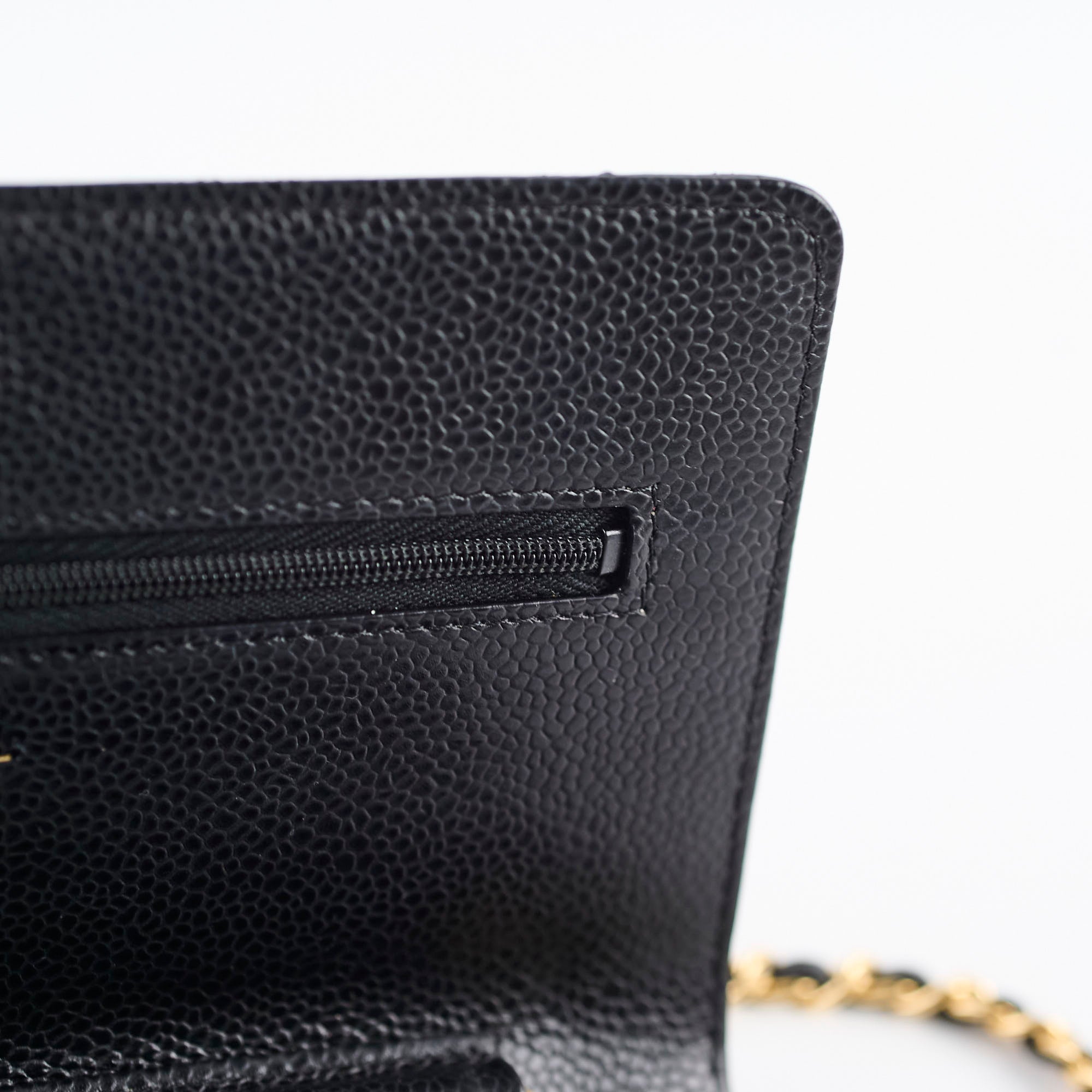 Light hairline scratches on hardware, minor indent from zipper (unavoidable)