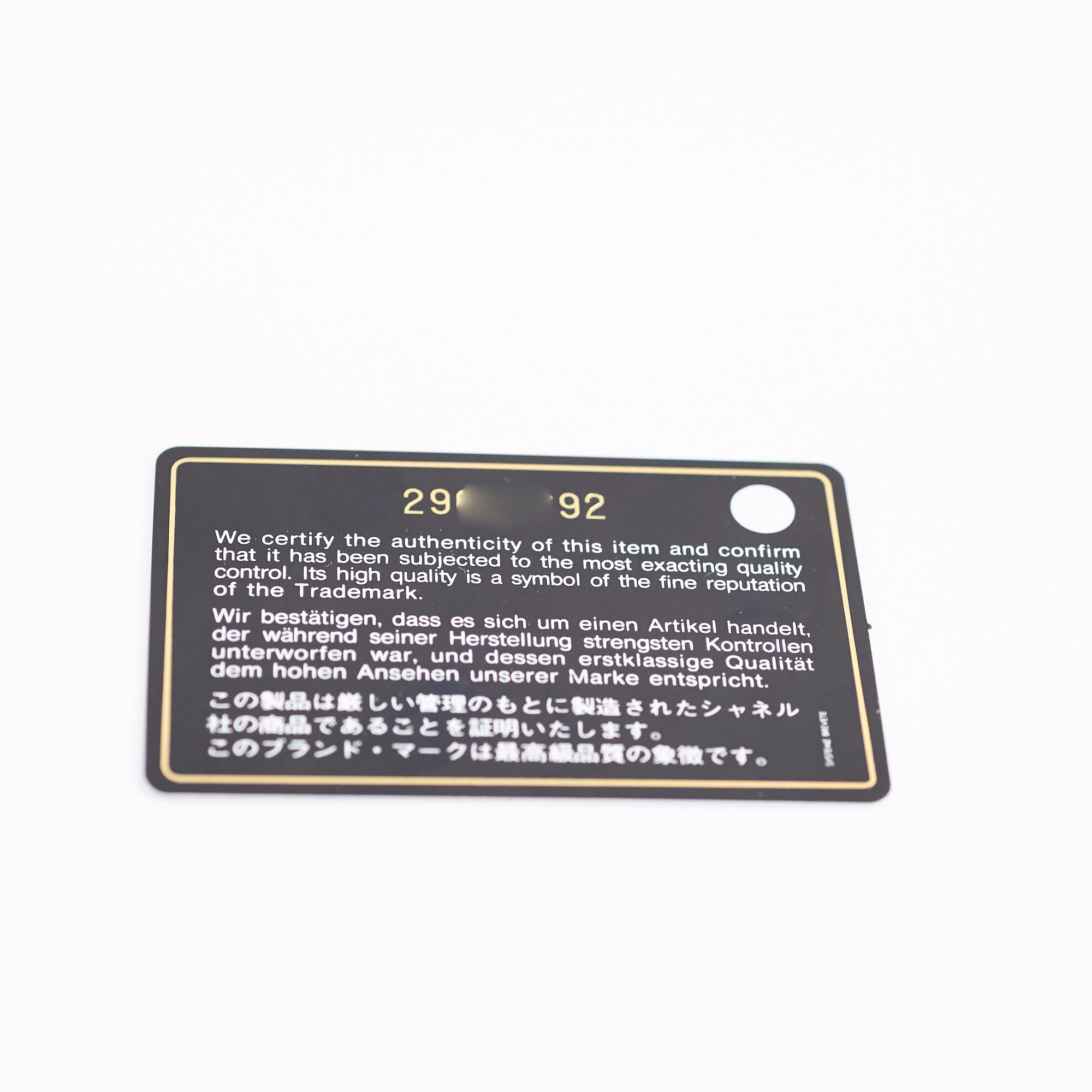 Authenticity Card, Dustbag