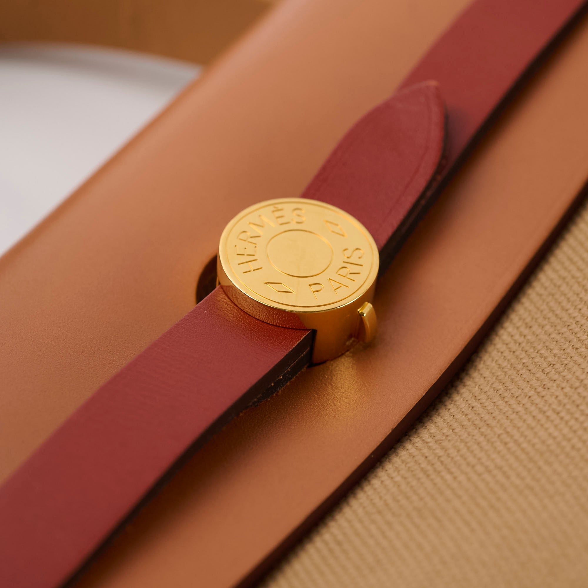 Light hairline scratches hardware, light indent on opening flap, minor creasing on sangles