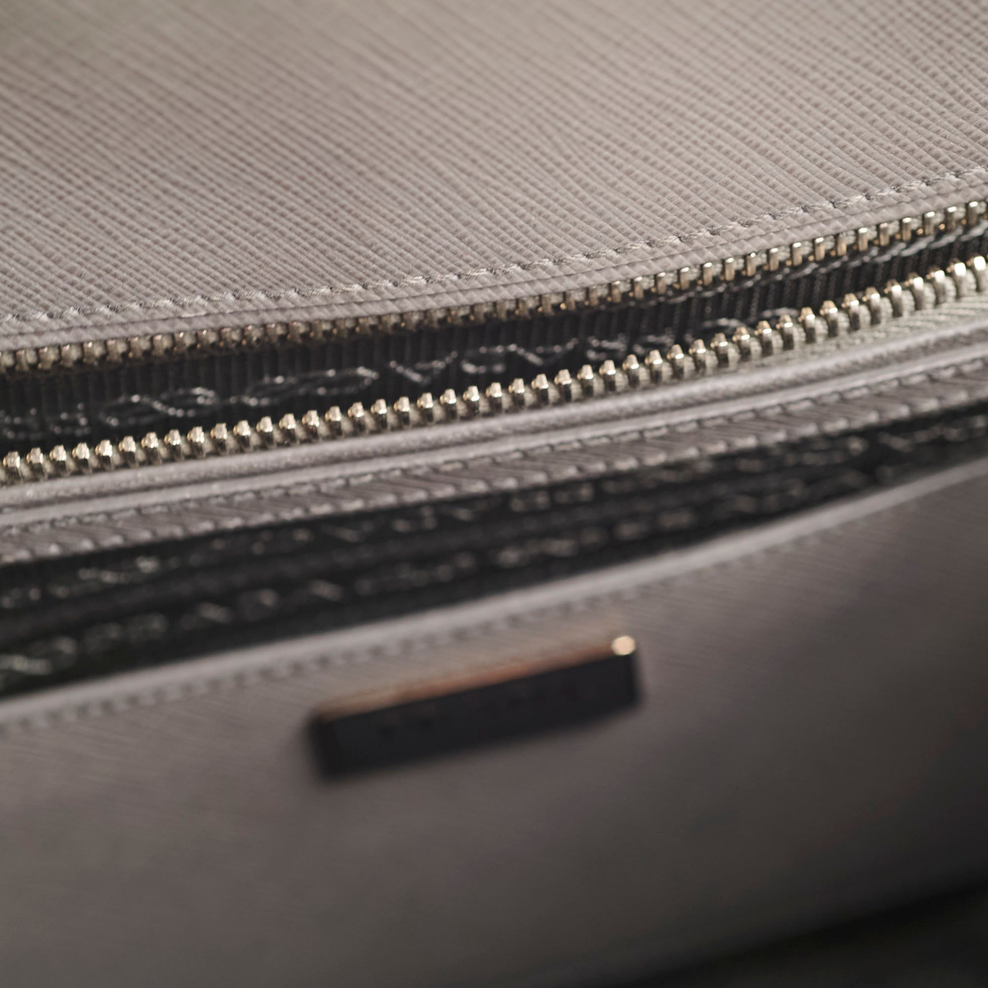 Slightly softened shape, rubbing on corners, small white mark near the zipper stop, slight tarnish on hardware