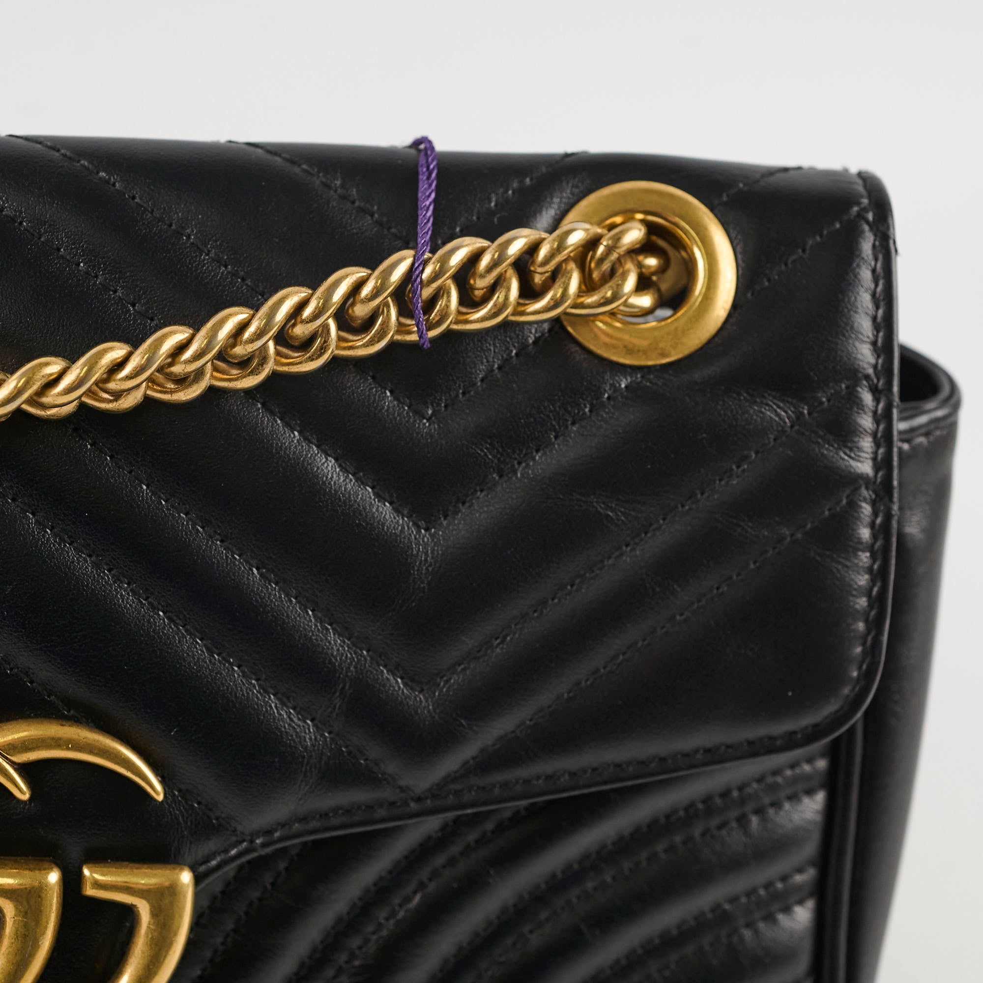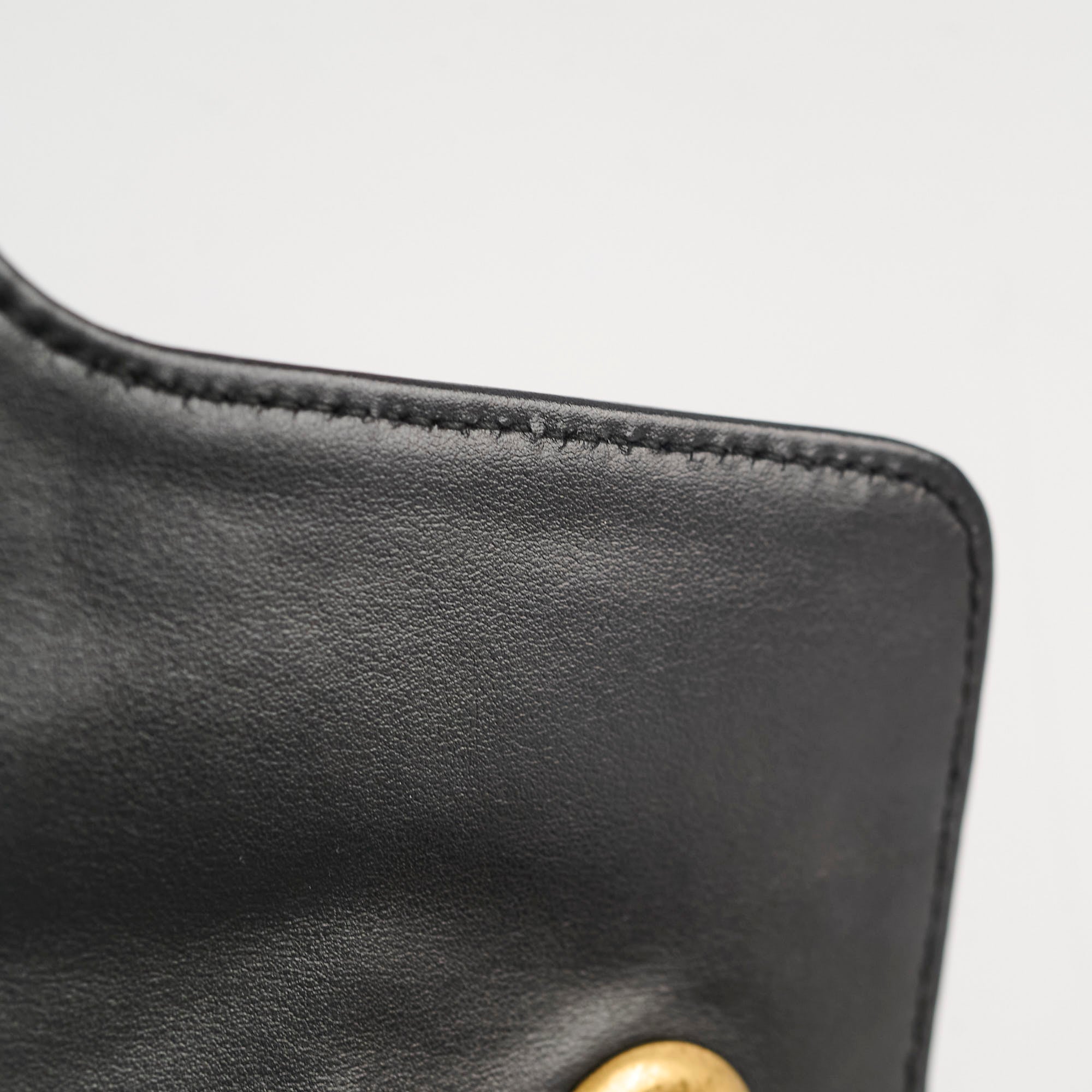 Scratches and tarnishing on hardware, softened structure, creasing on flap and interior leather