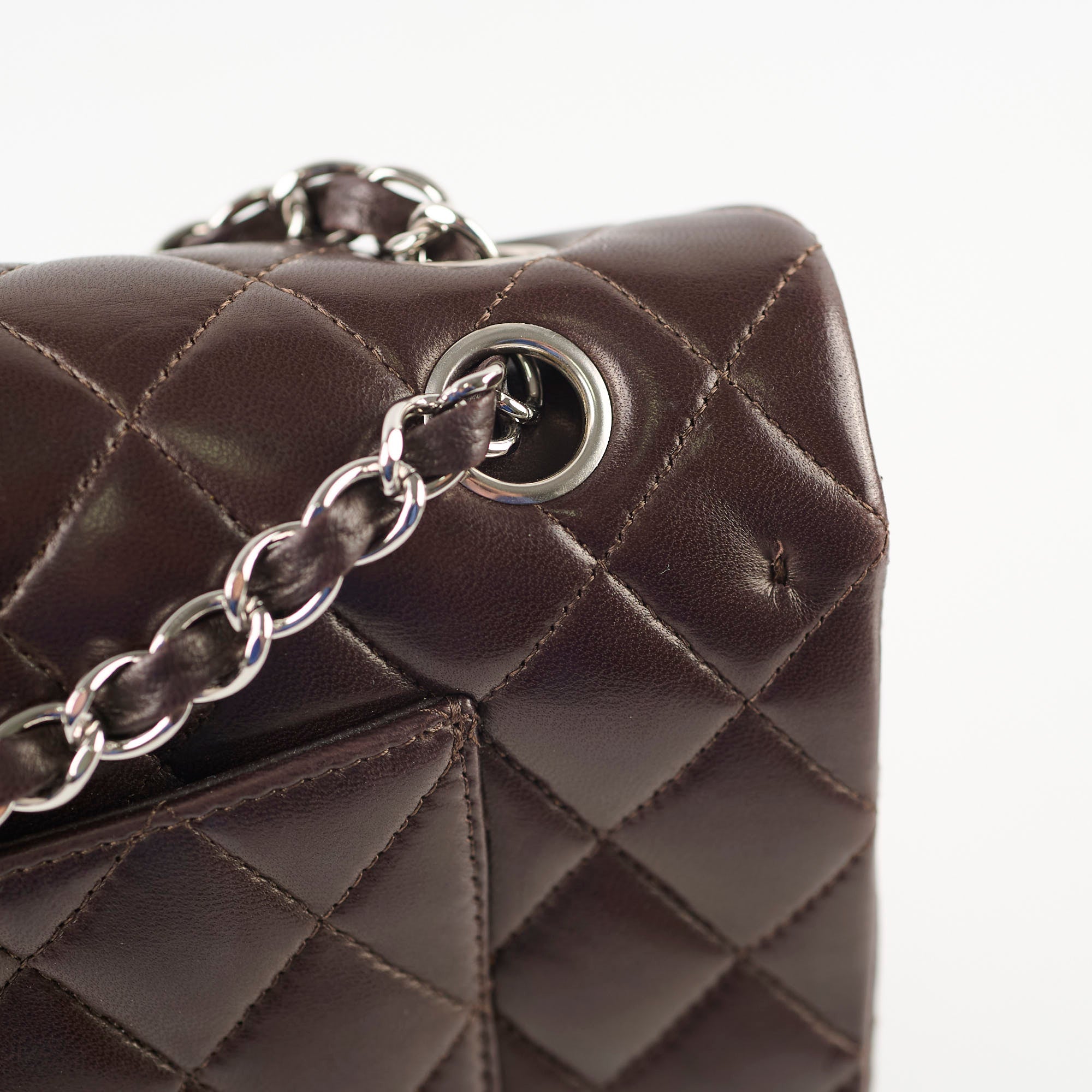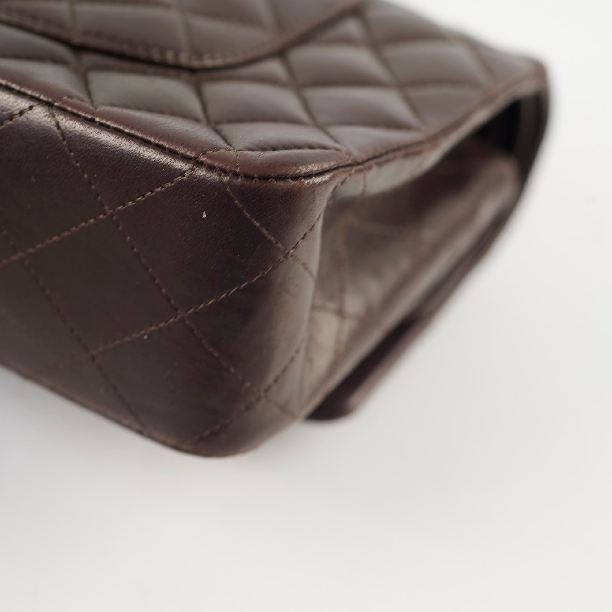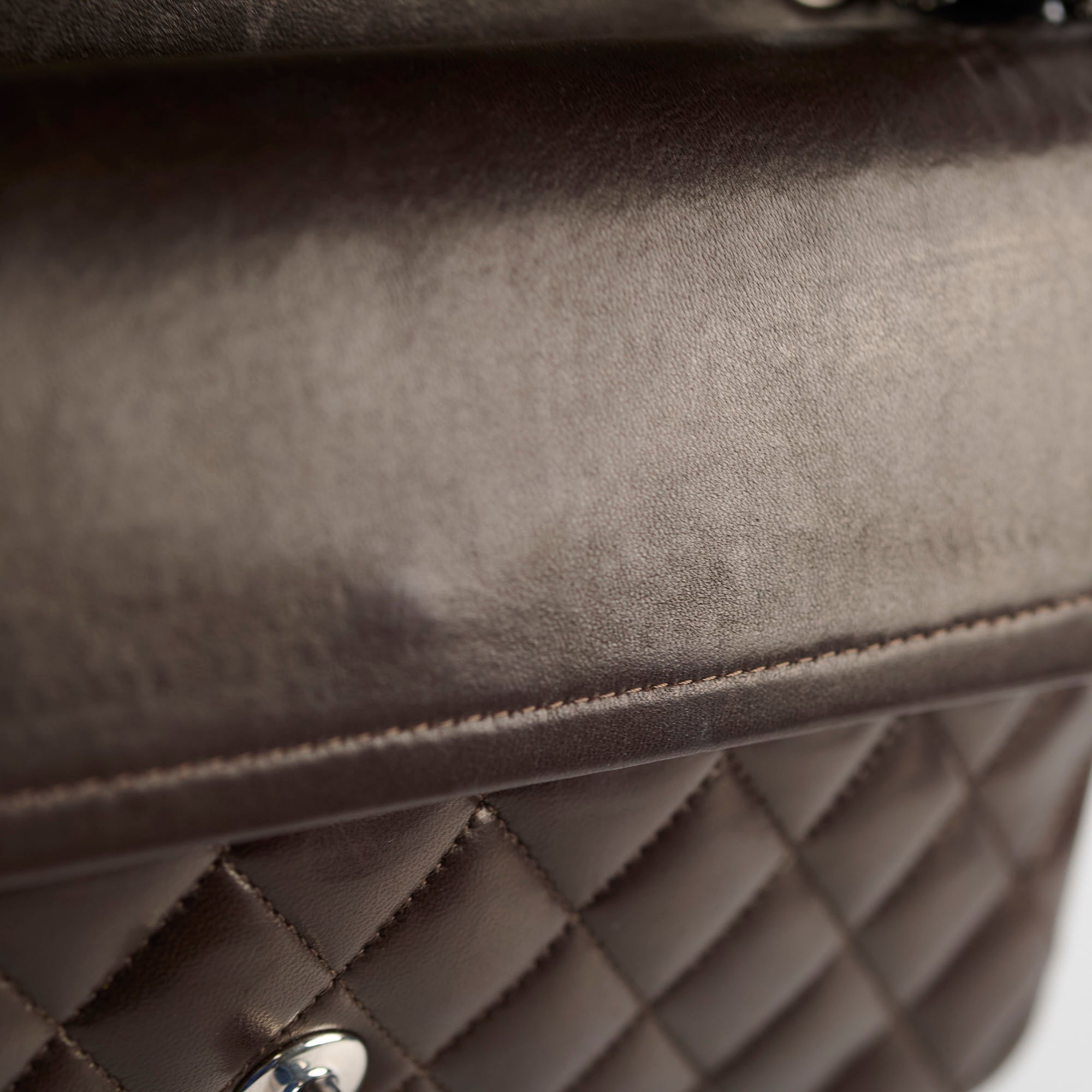 Slight crease near the base, light hairline scratches on hardware, rubbing on corners, minor scuffs and nail marks throughout