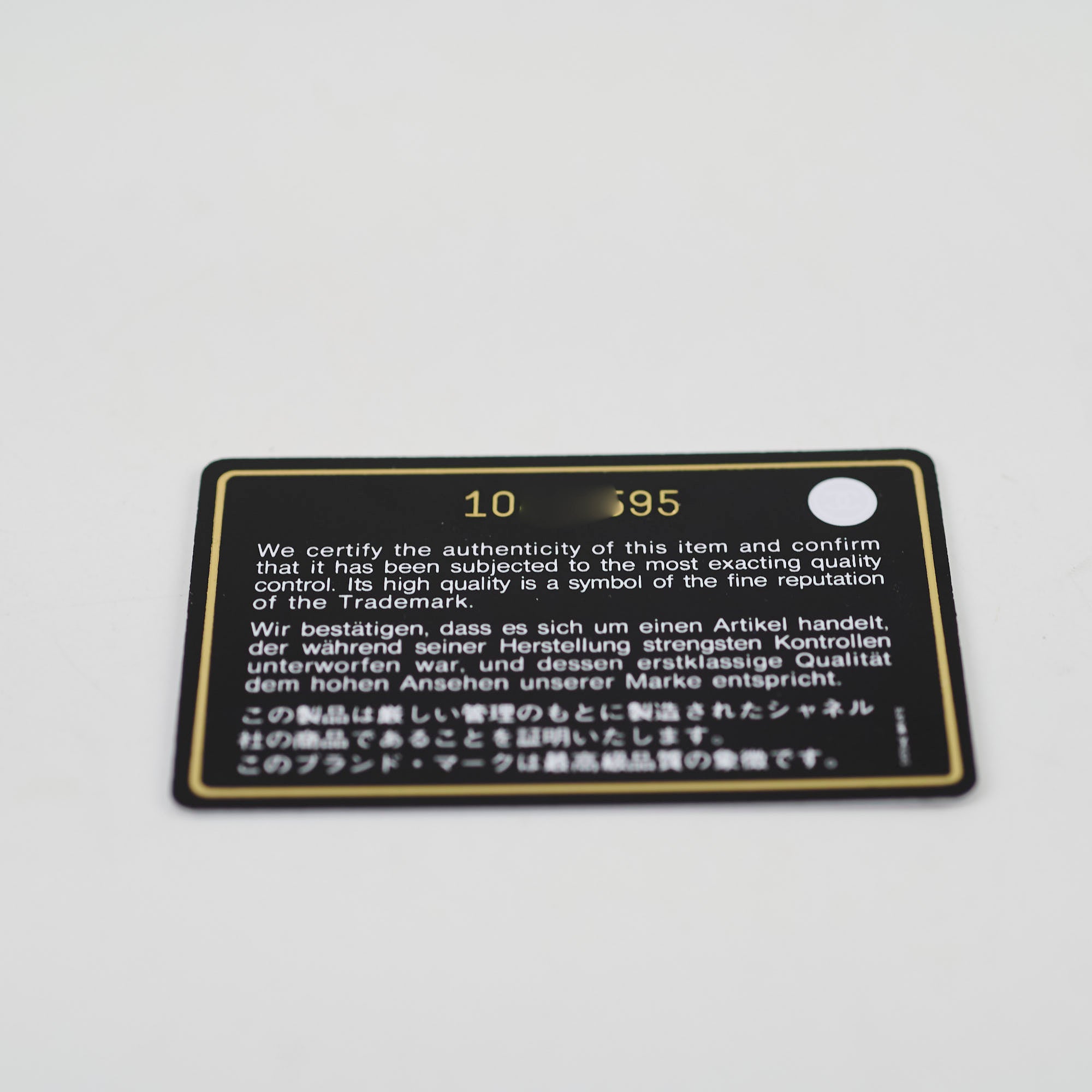 Authenticity Card, Dustbag