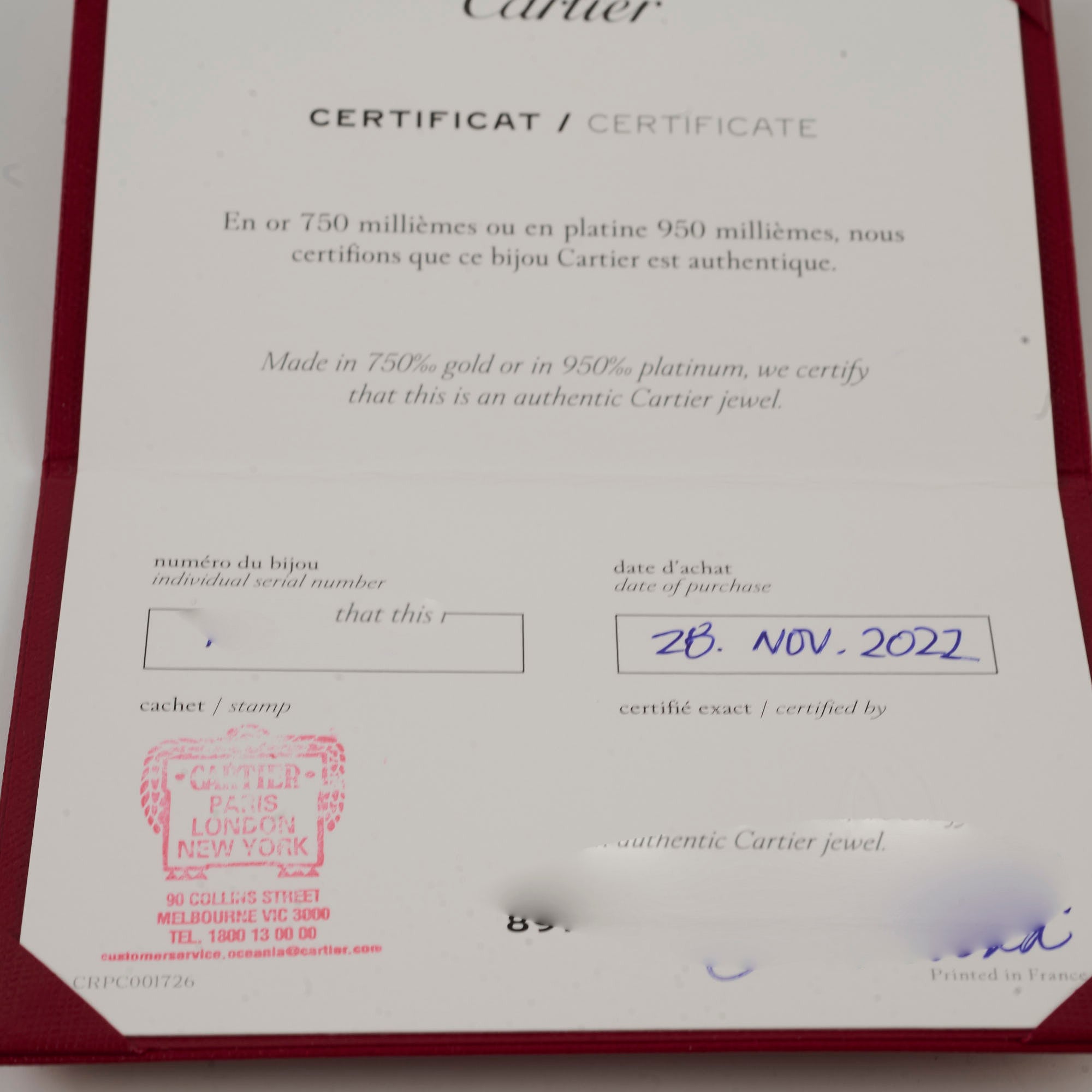 Receipt, Inner Box, Outer Box, Authenticity Certificate