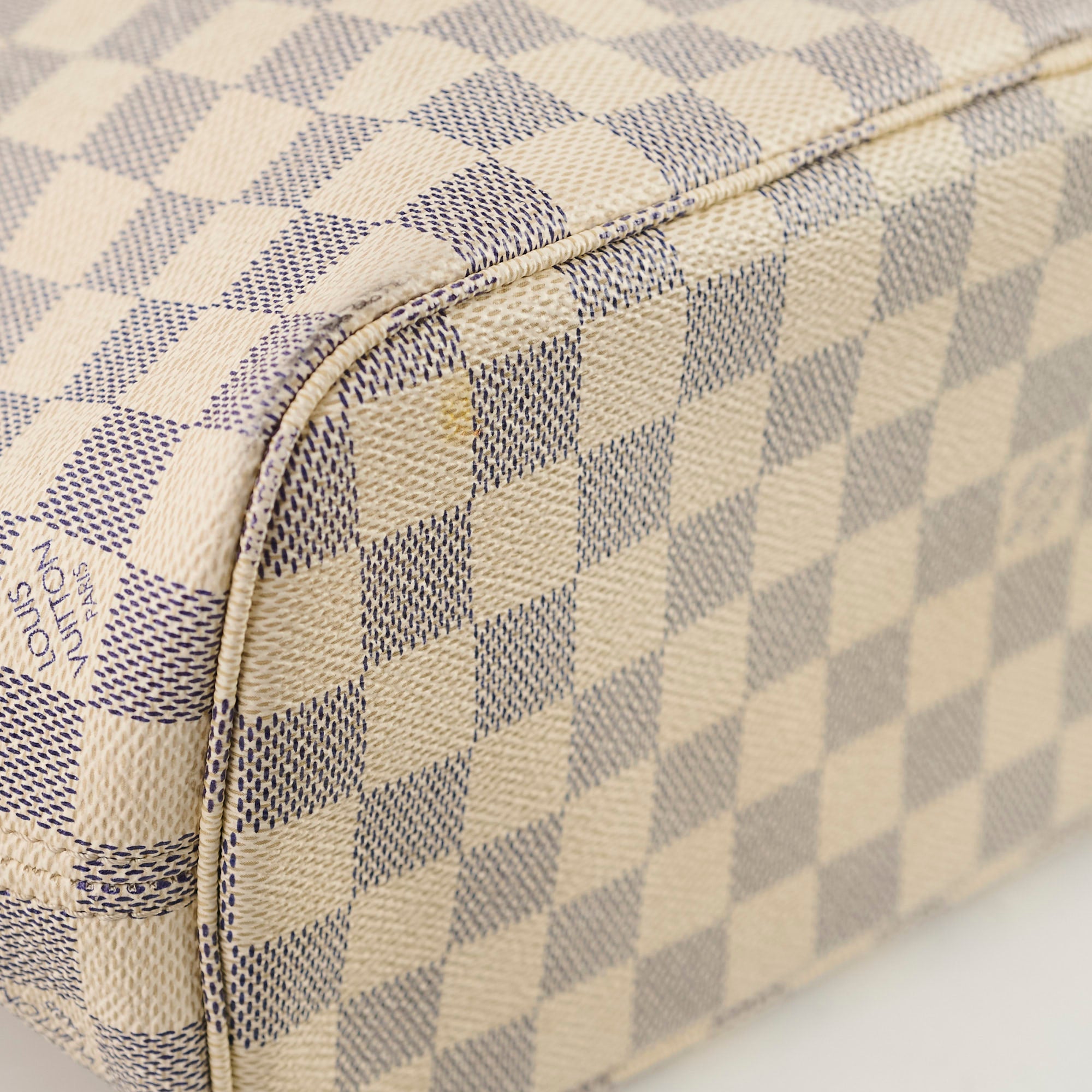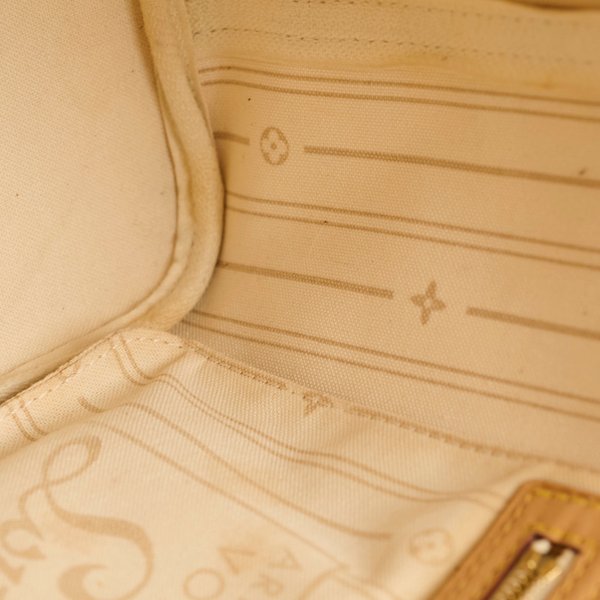Darkening and rubbing on vachetta, light stain and yellowing on interior