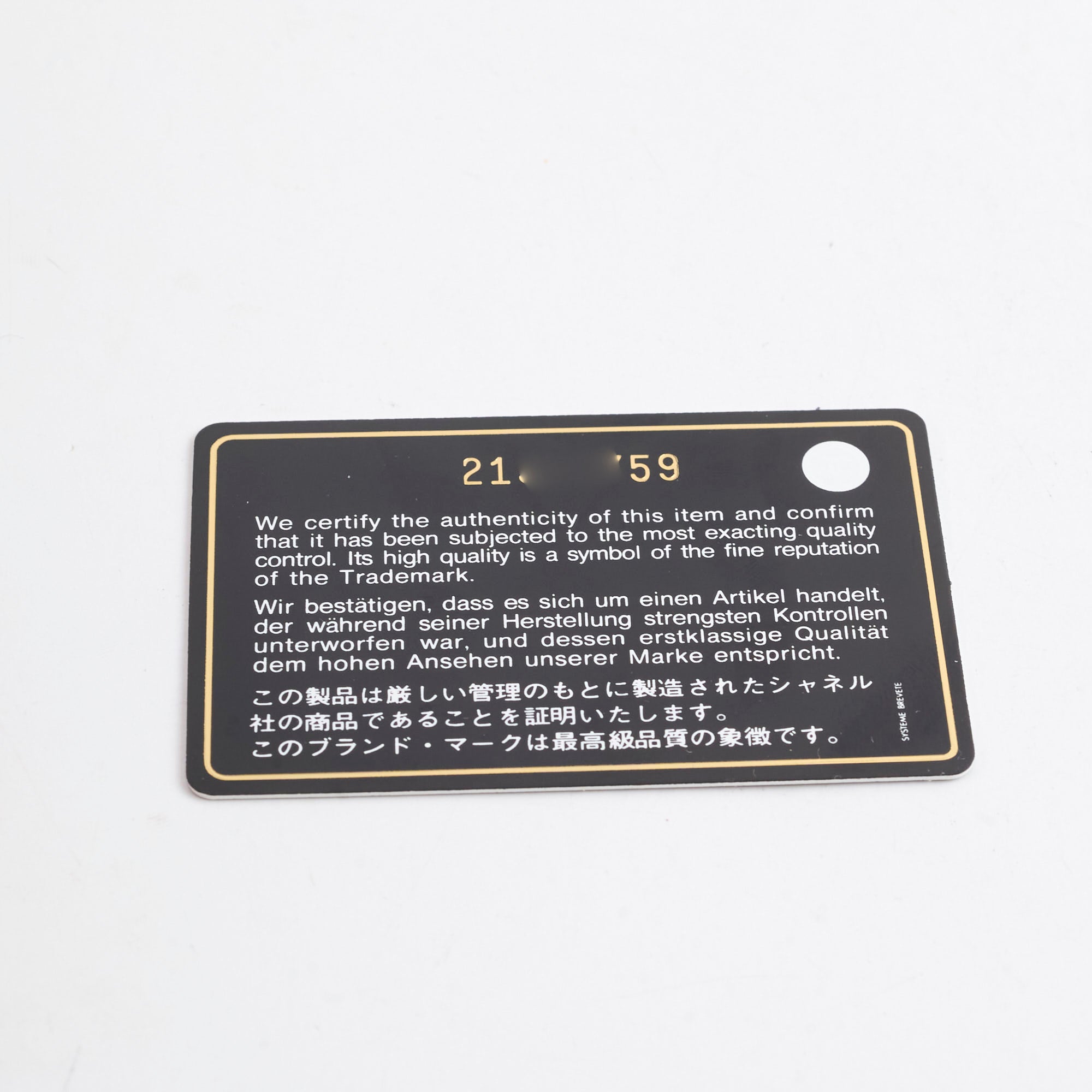 Authenticity Card, Dustbag