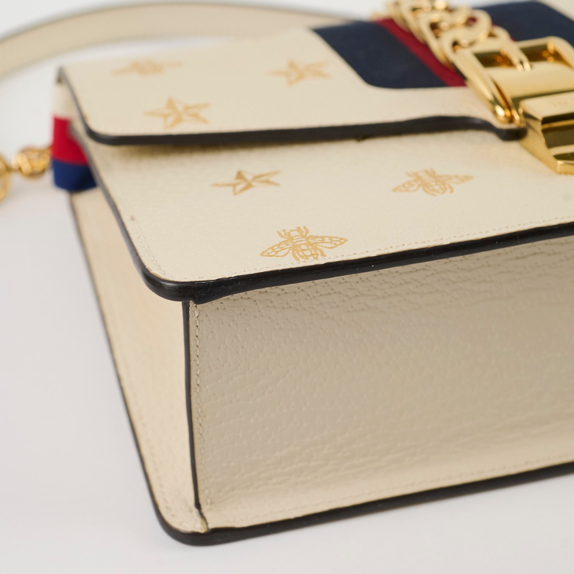 Minor hairline scratches on the hardware. Light interior leather creasing.