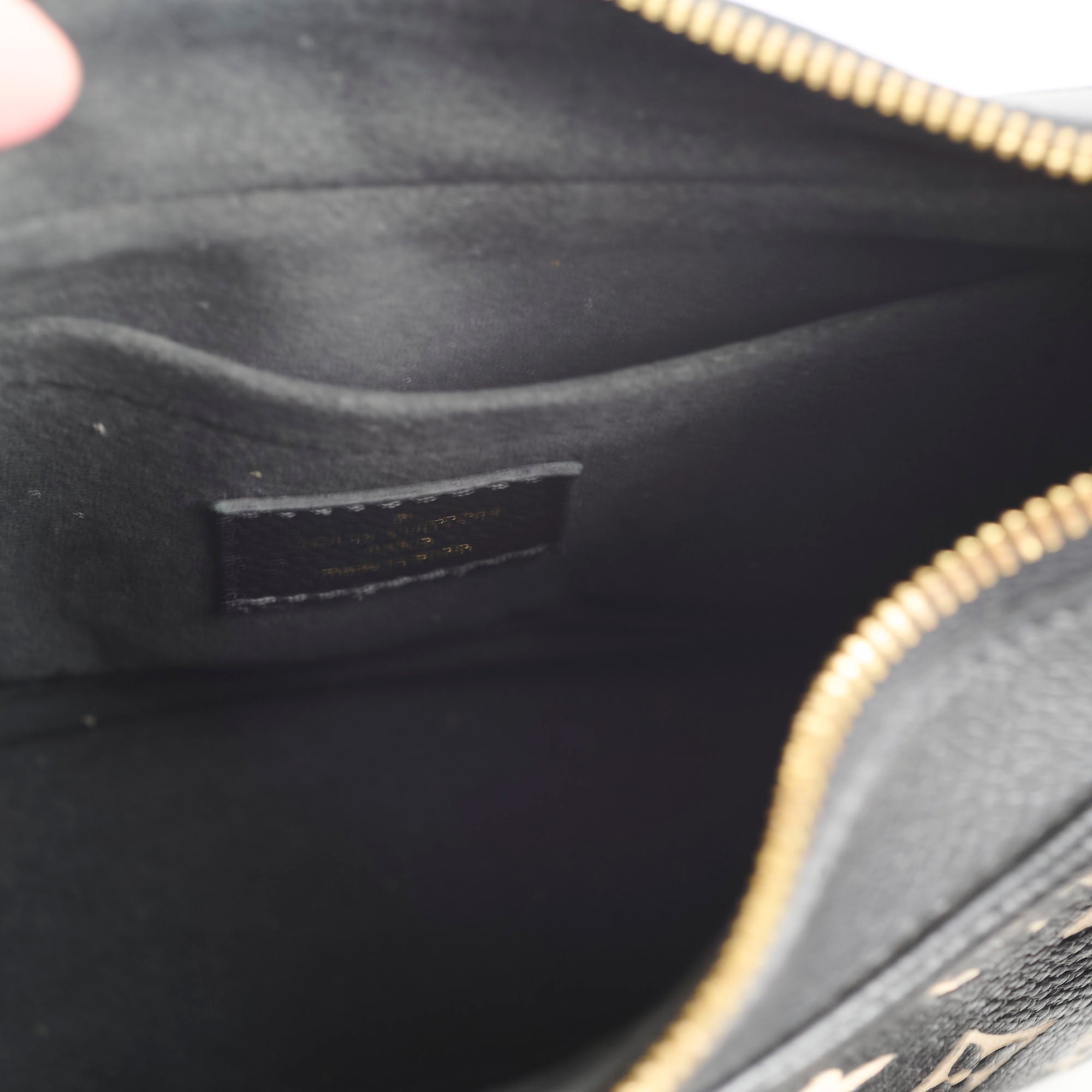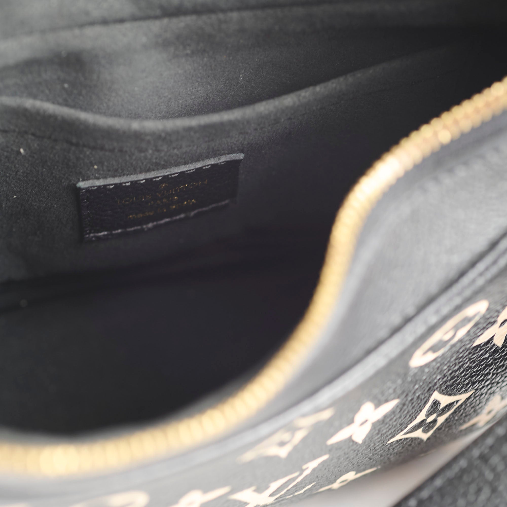 Minor hardware hairline scratches. Light interior wear. Zipper stiff. Exterior is in like-new condition.