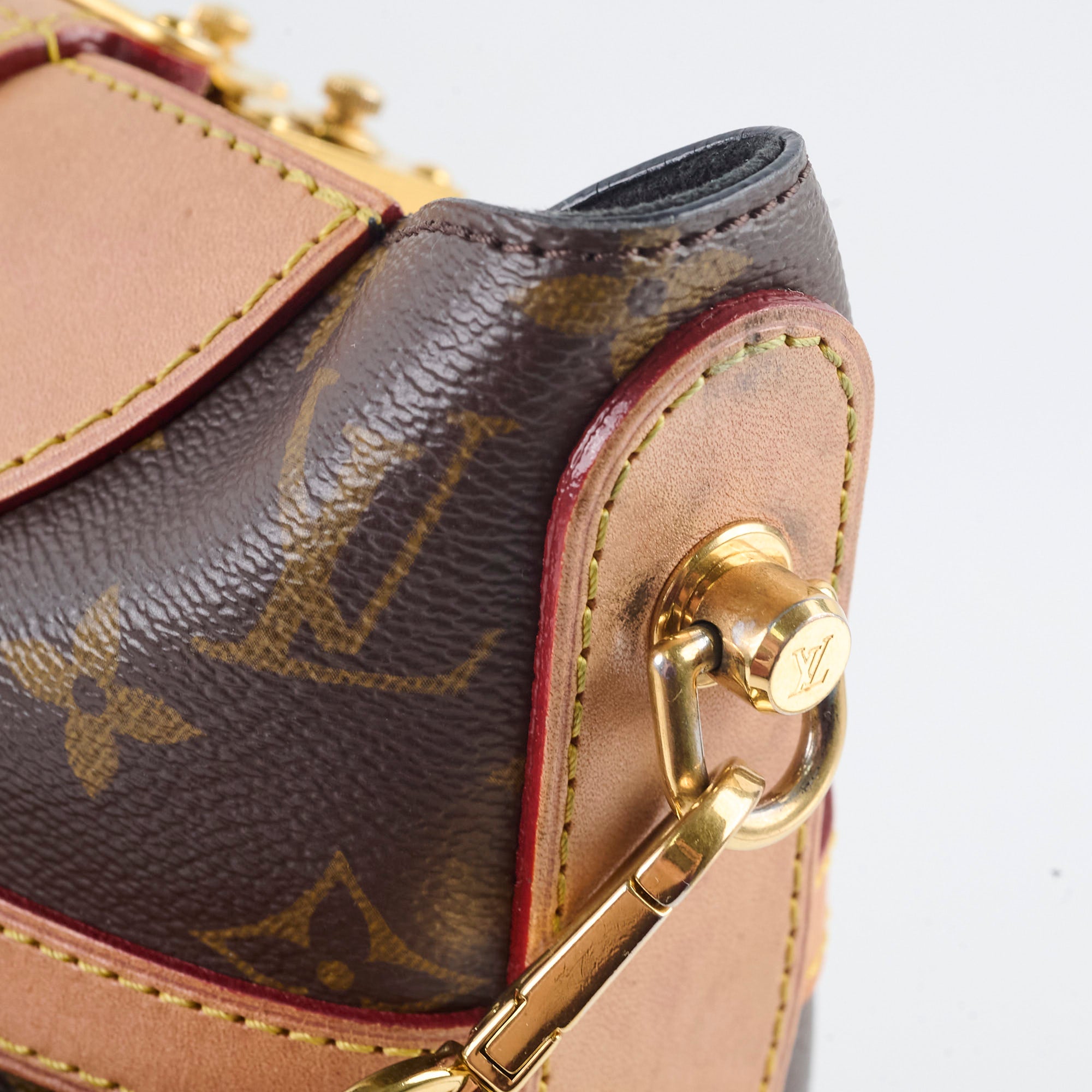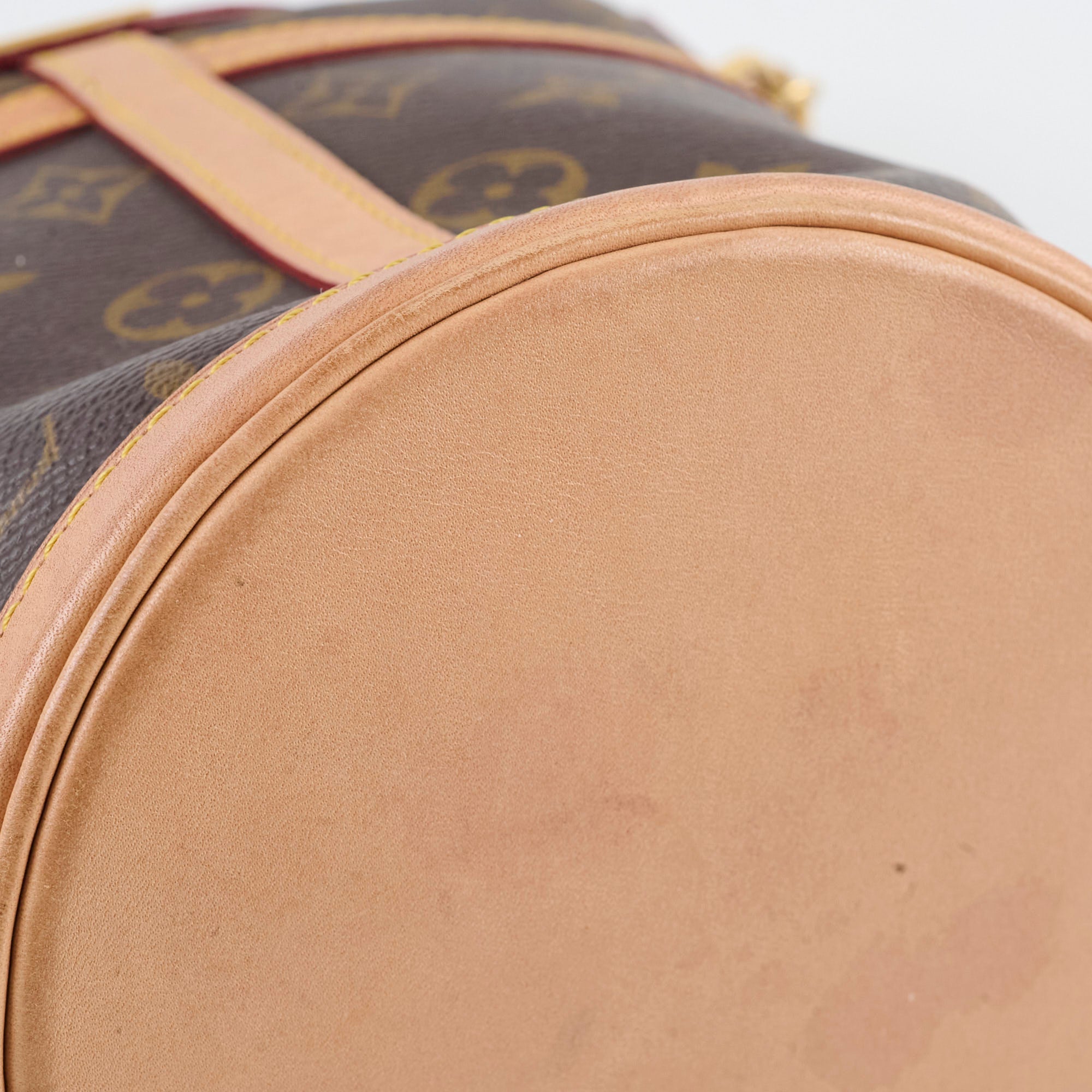 Watermarks & signs of wear on vachetta throughout, structure softened, some tarnish on hardware