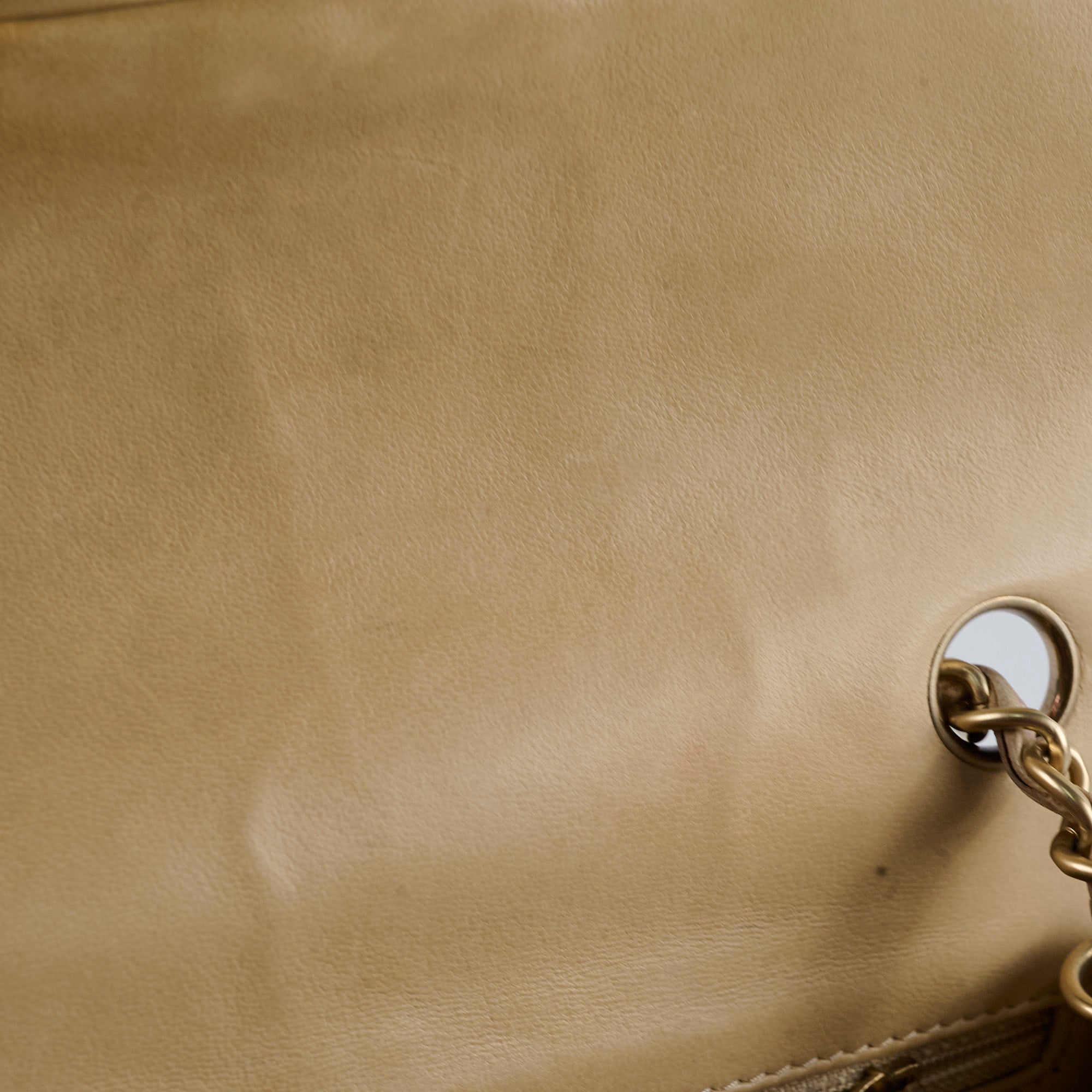 Overall leather discoloration. Minor nail marks and light stains on the interior.
