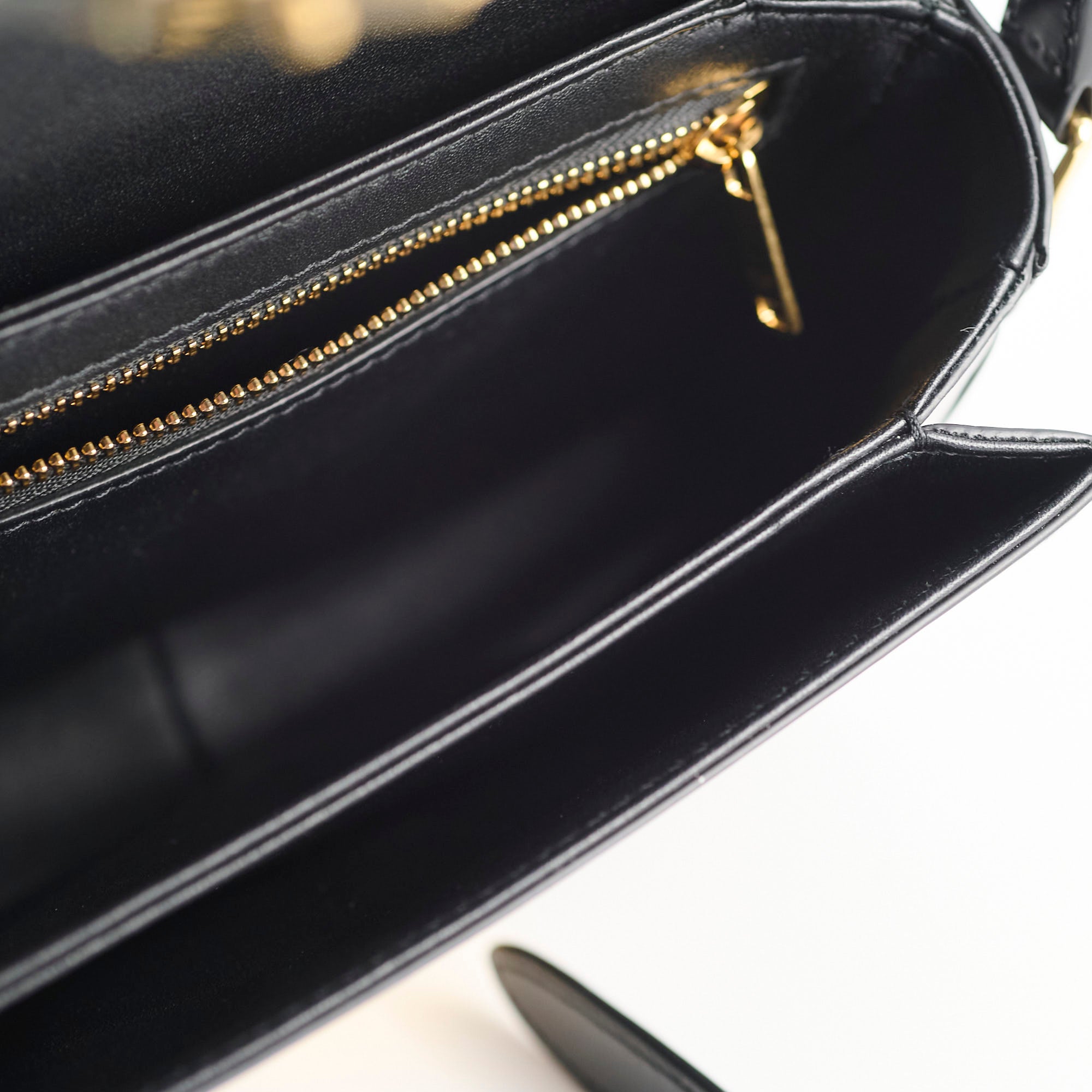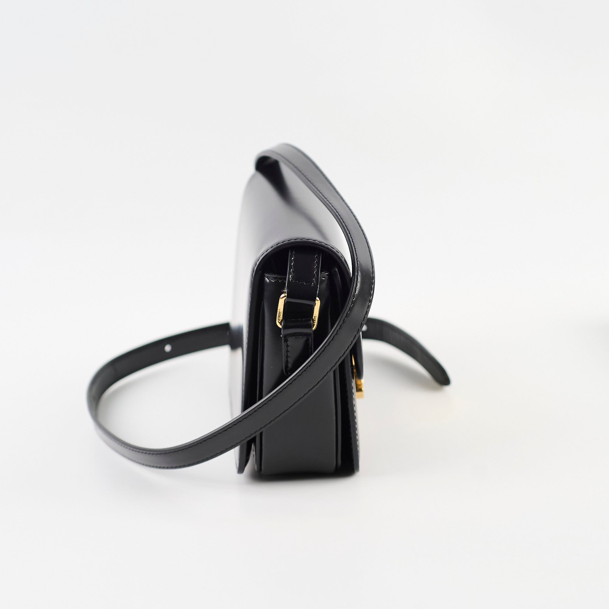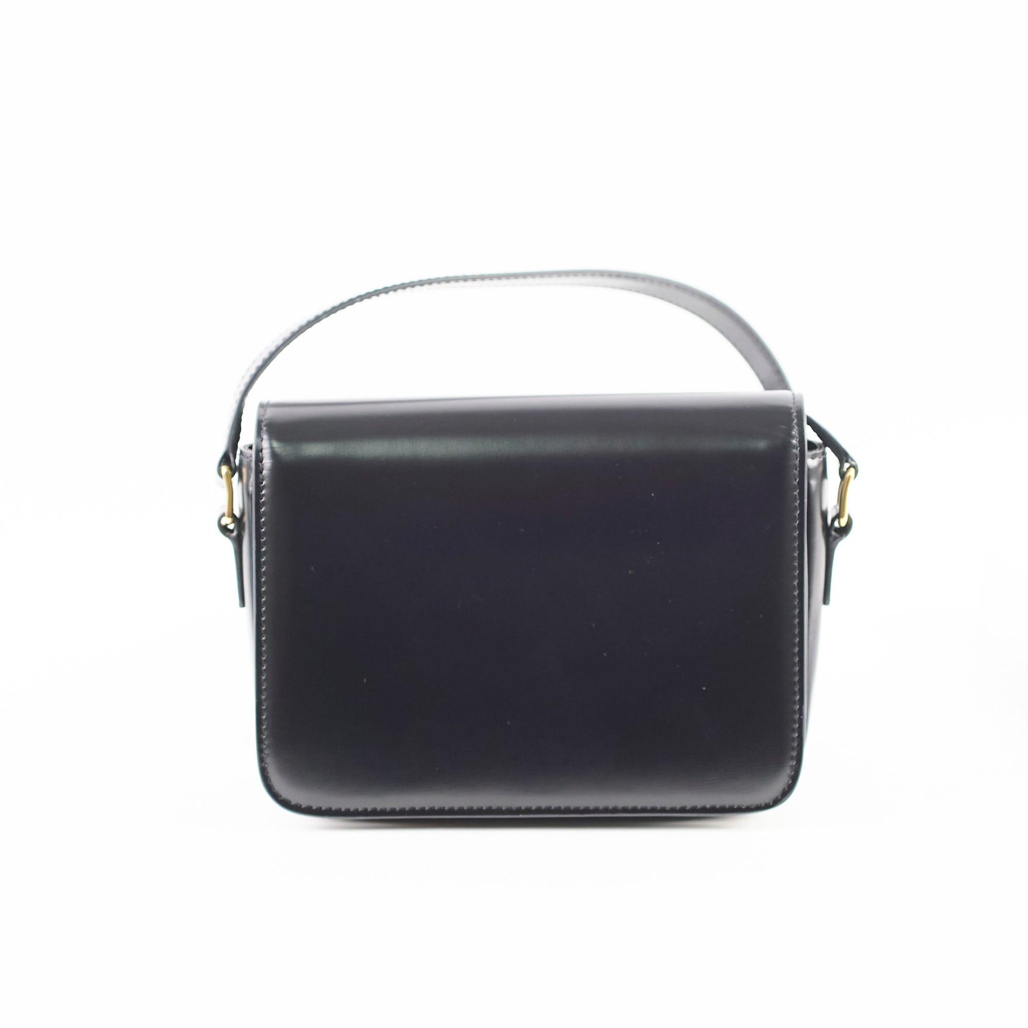 Light mark on front and under flap, minor indents on back, light hairline scratches on hardware