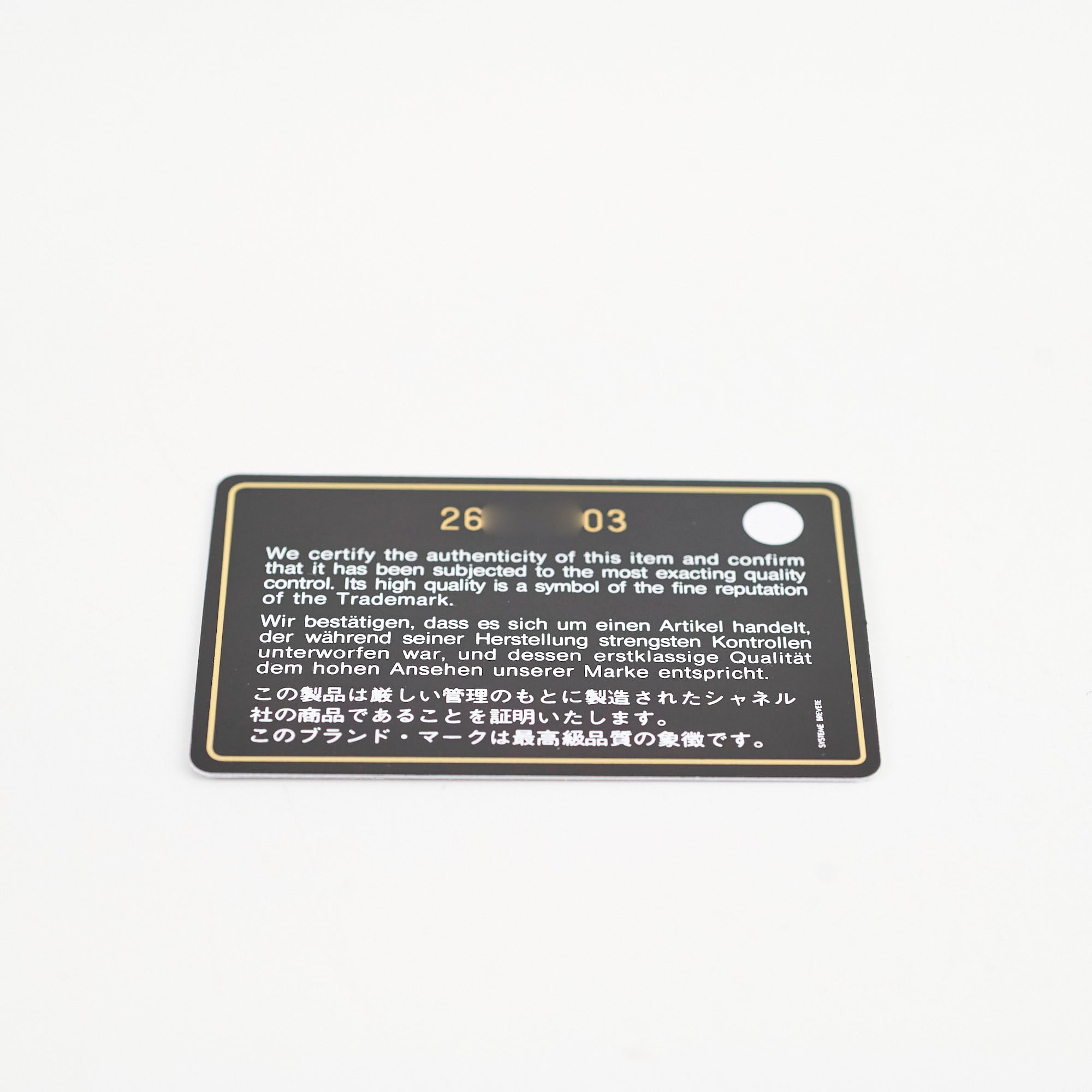 Authenticity Card, Receipt