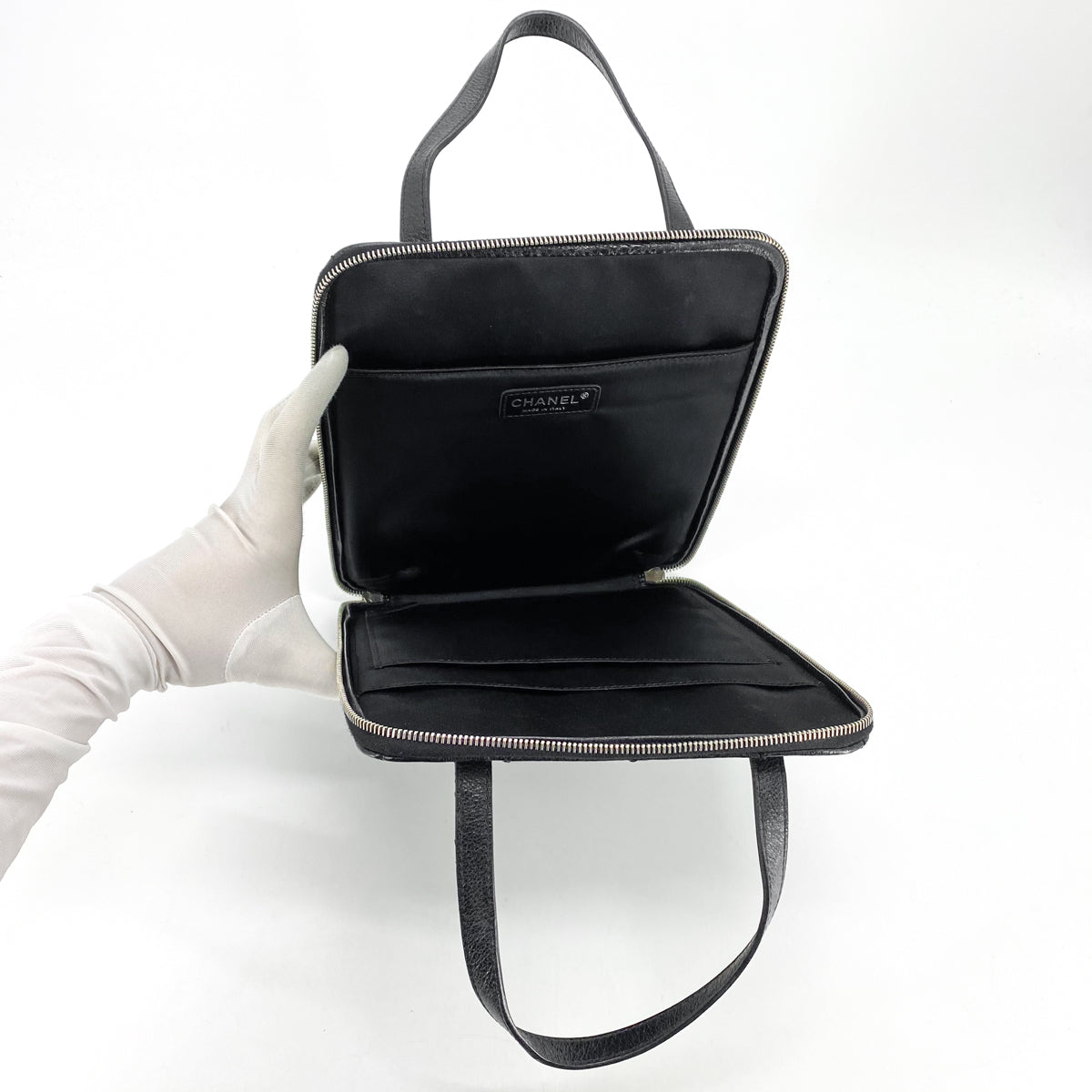 Signs of use on hardware, very minor marks on interior lining, light rubbing on edges/corners