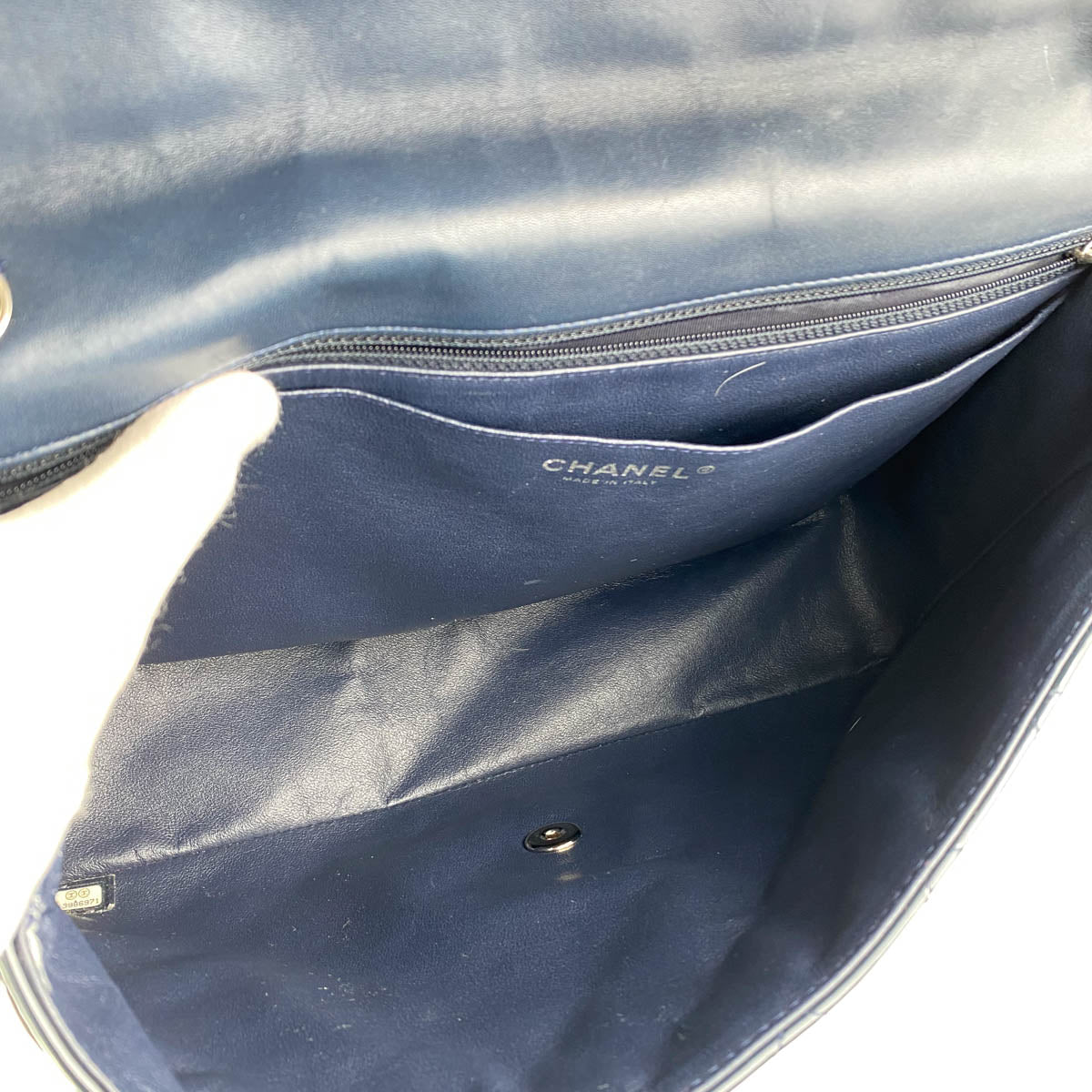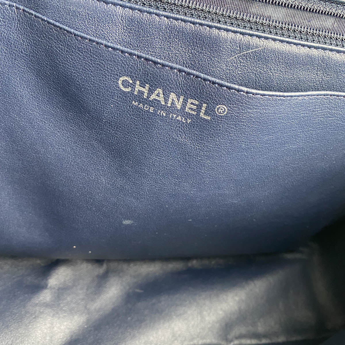 Tarnishing on hardware, nail marks under the flap, minor marks on the inside