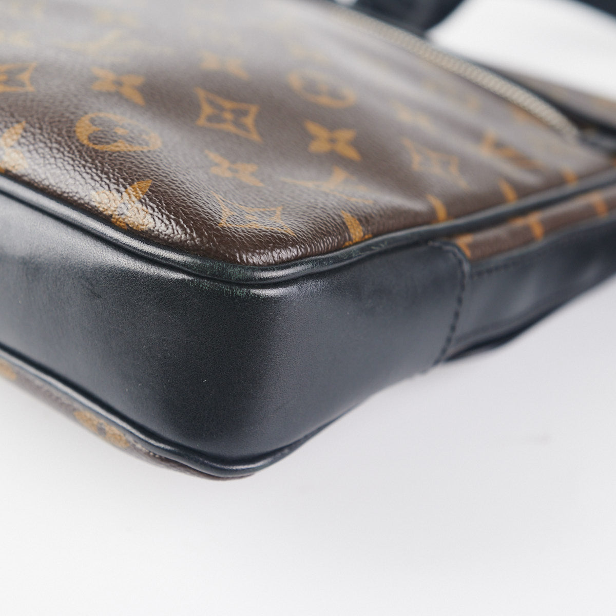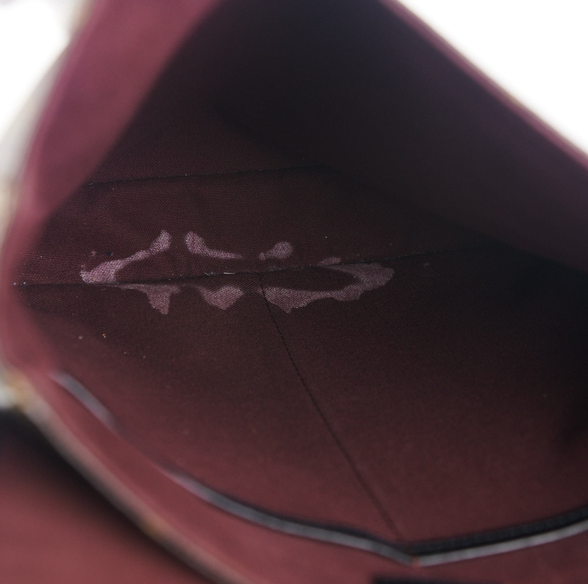 White stains on the interior, minor rubbing on corners, leather in good condition