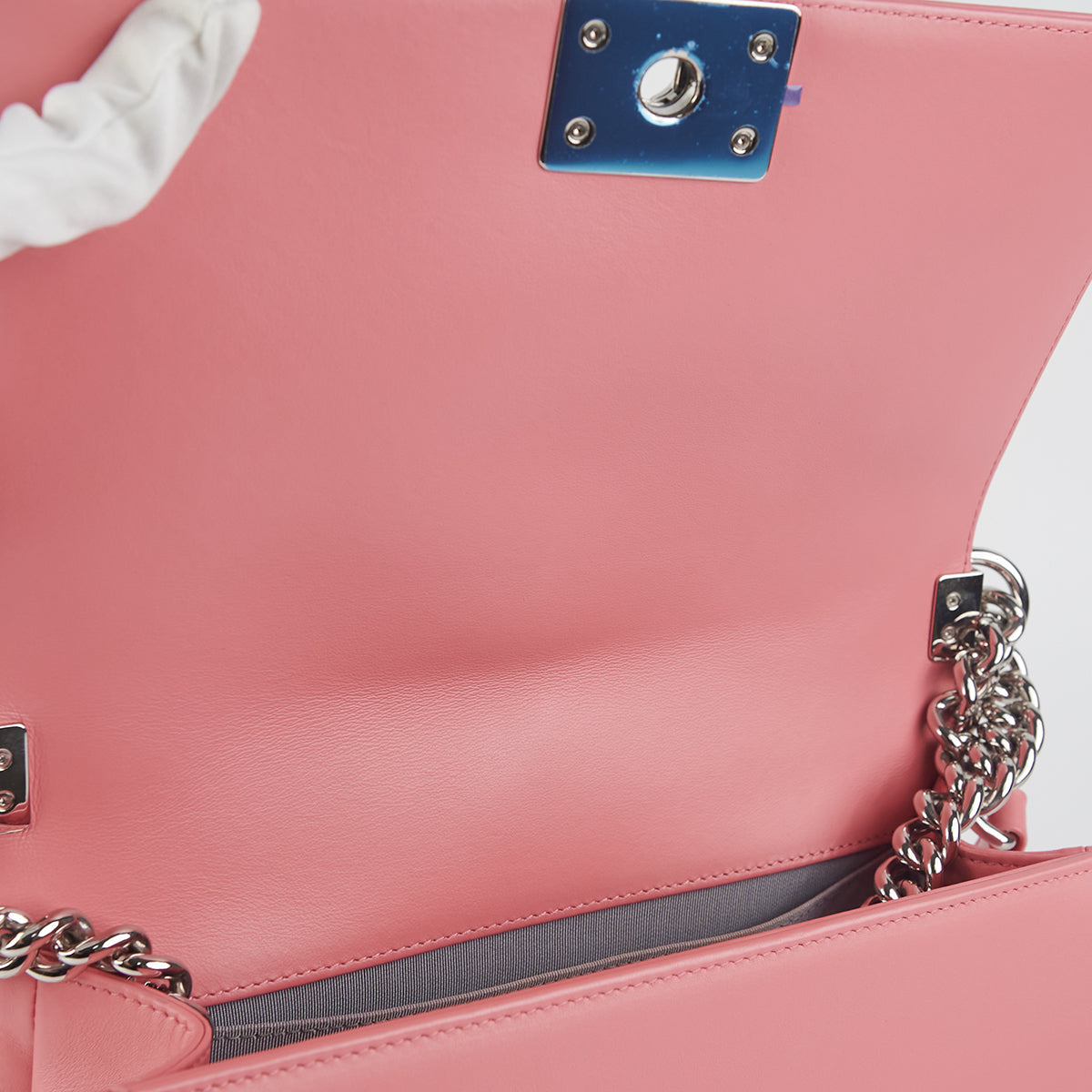 Minor hairline scratches on hardware, minor rubbing on corners, nail mark under flap, clean inside out