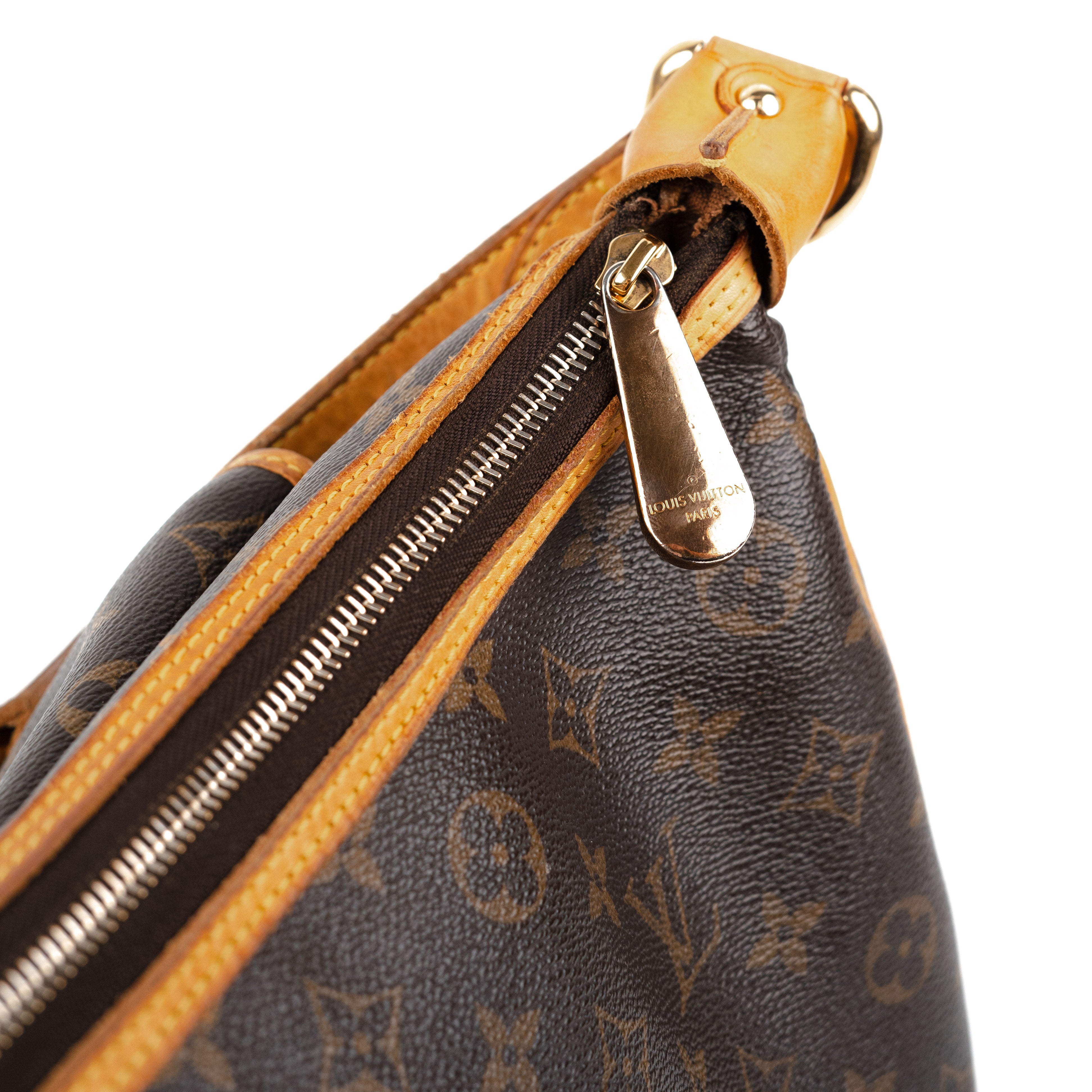Signs of wear throughout on vachetta leather and piping, discolouration on hardware, tear on two corners