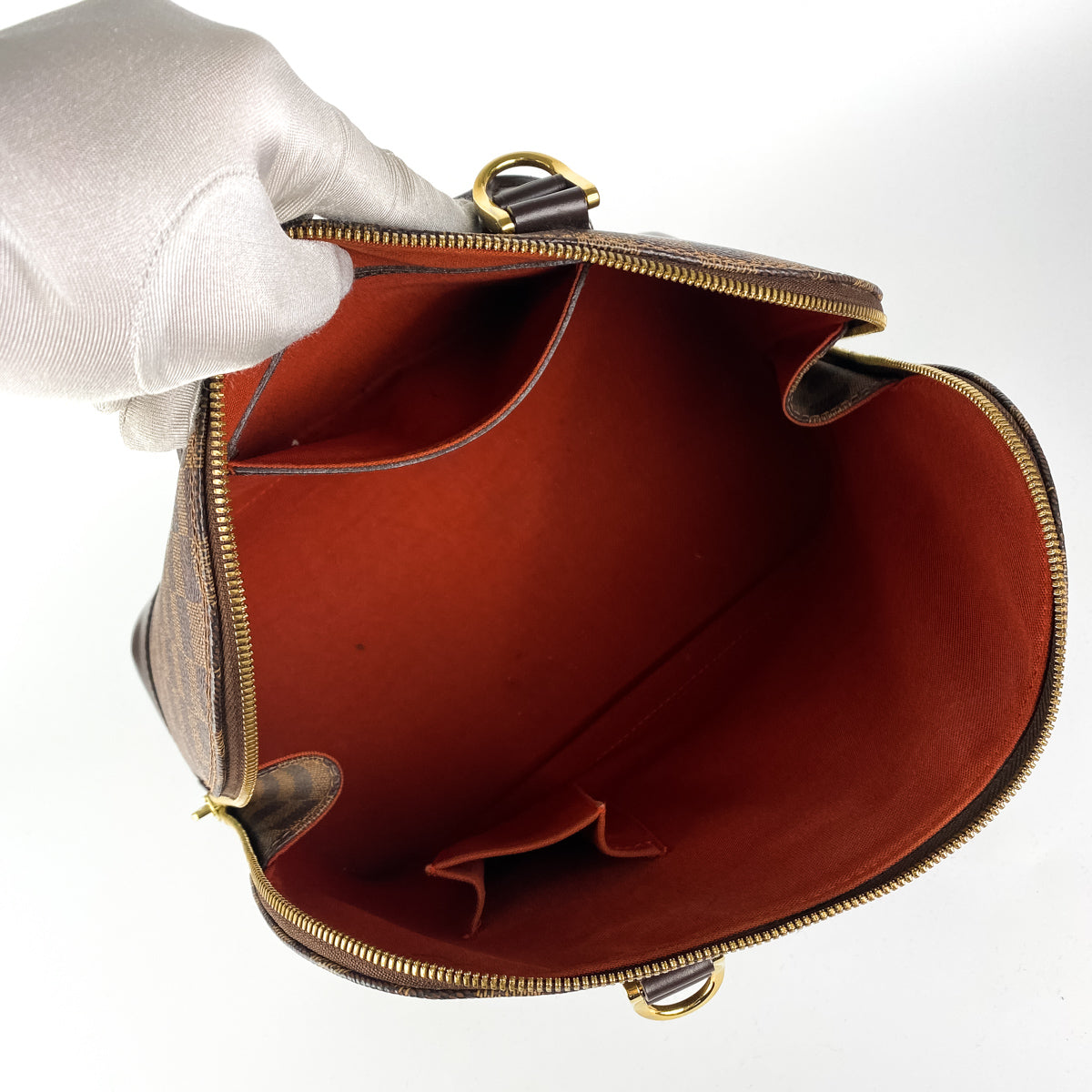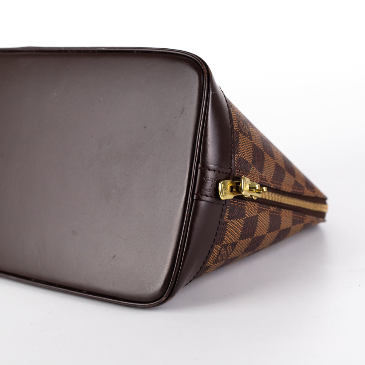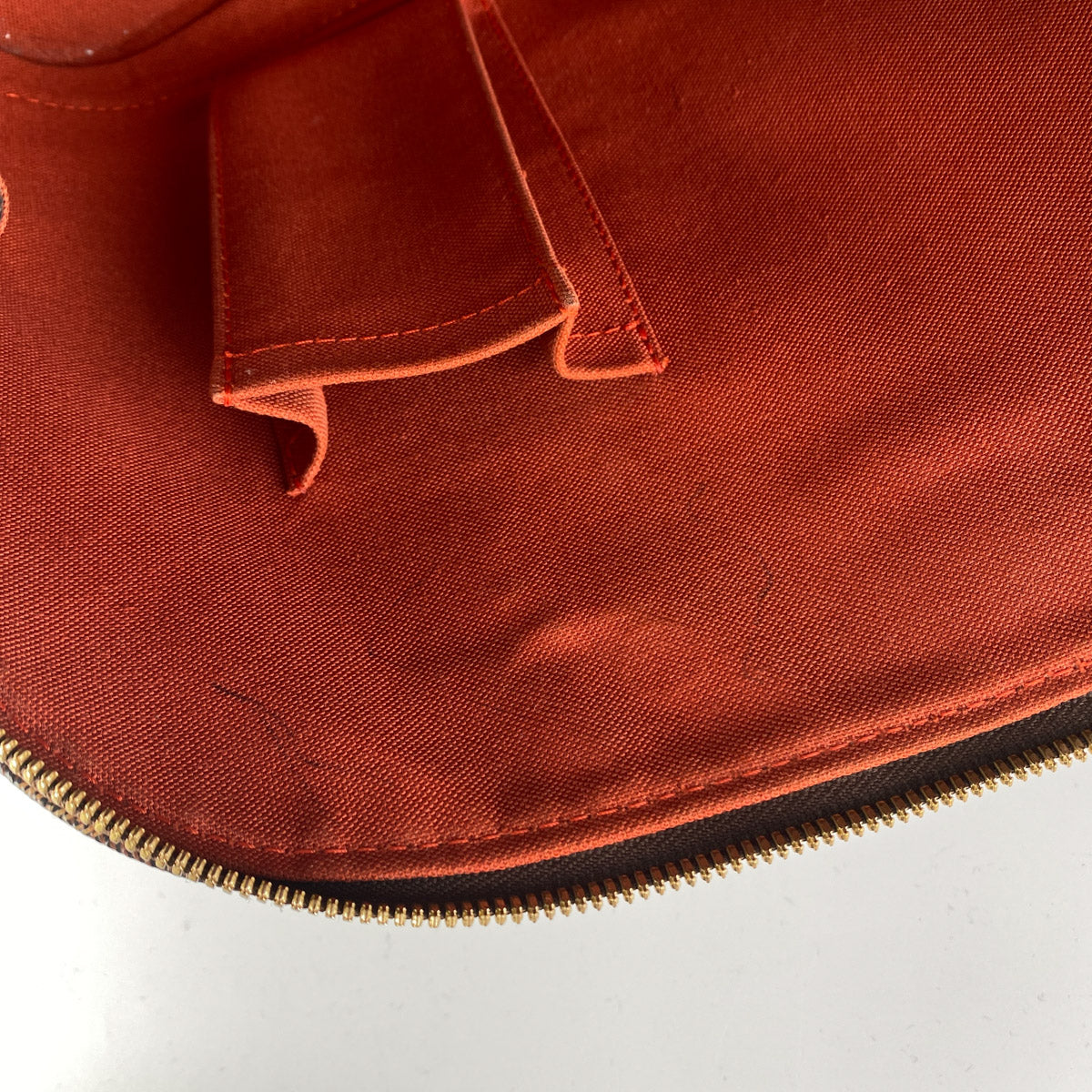 Slight tarnishing on the hardware, nail marks on the leather, few marks on the inside, overall structure is excellent