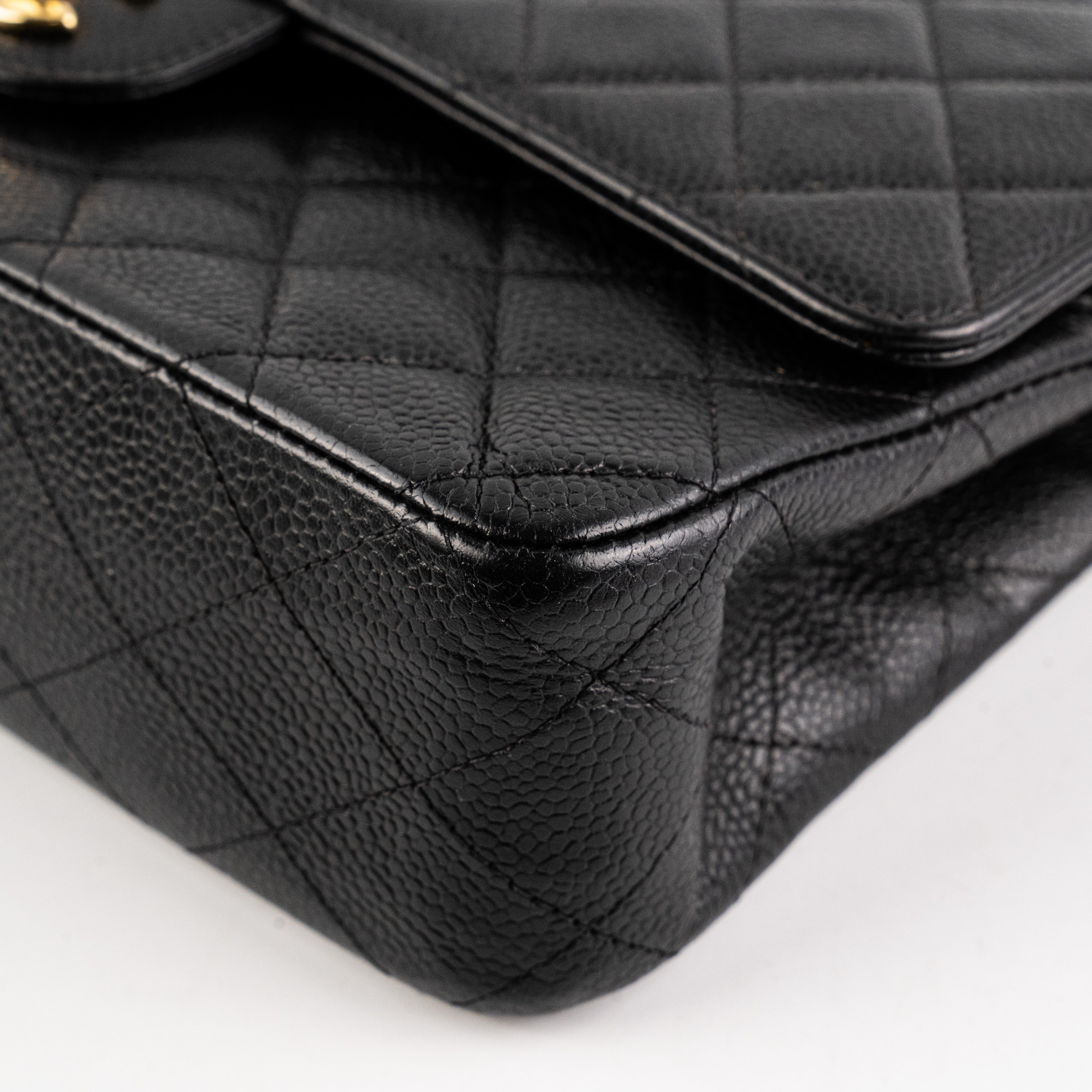 Light creases at the front, tarnishing on hardware CC, crease at the back, nail marks under flap, logo and serial number have fainted