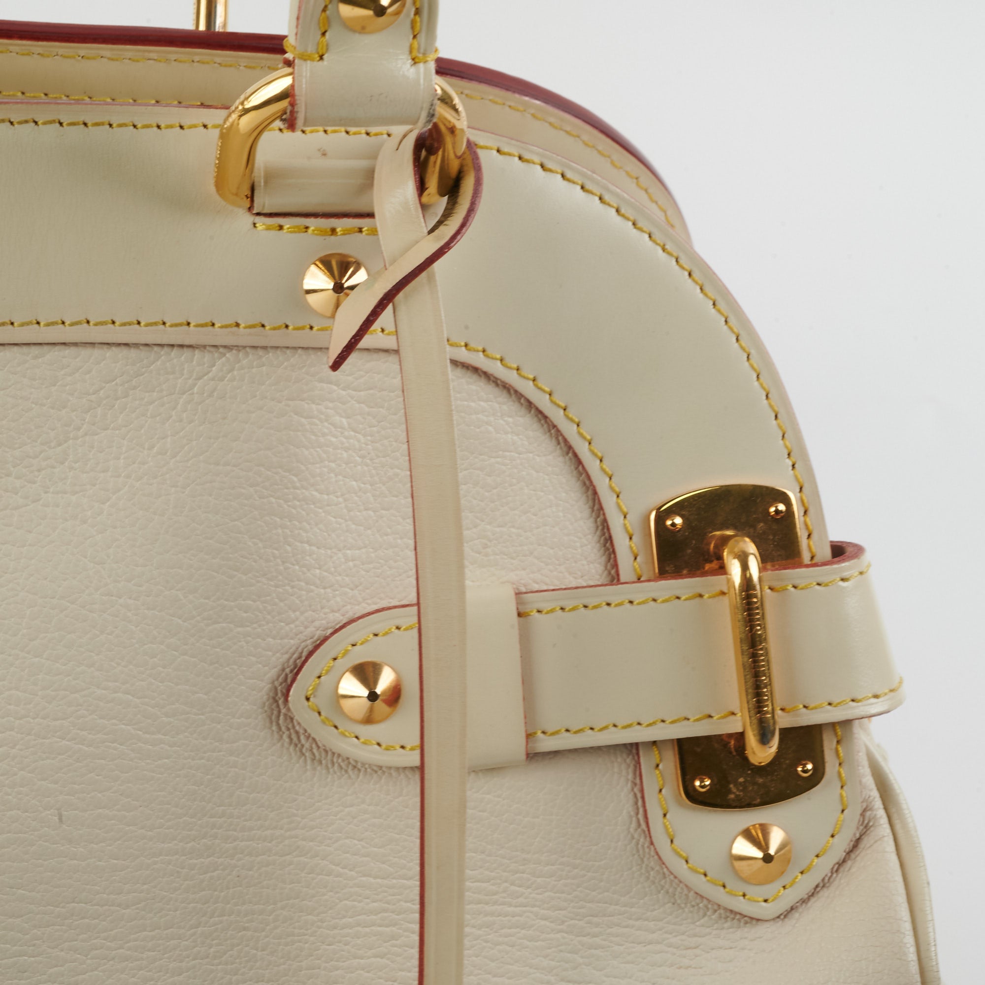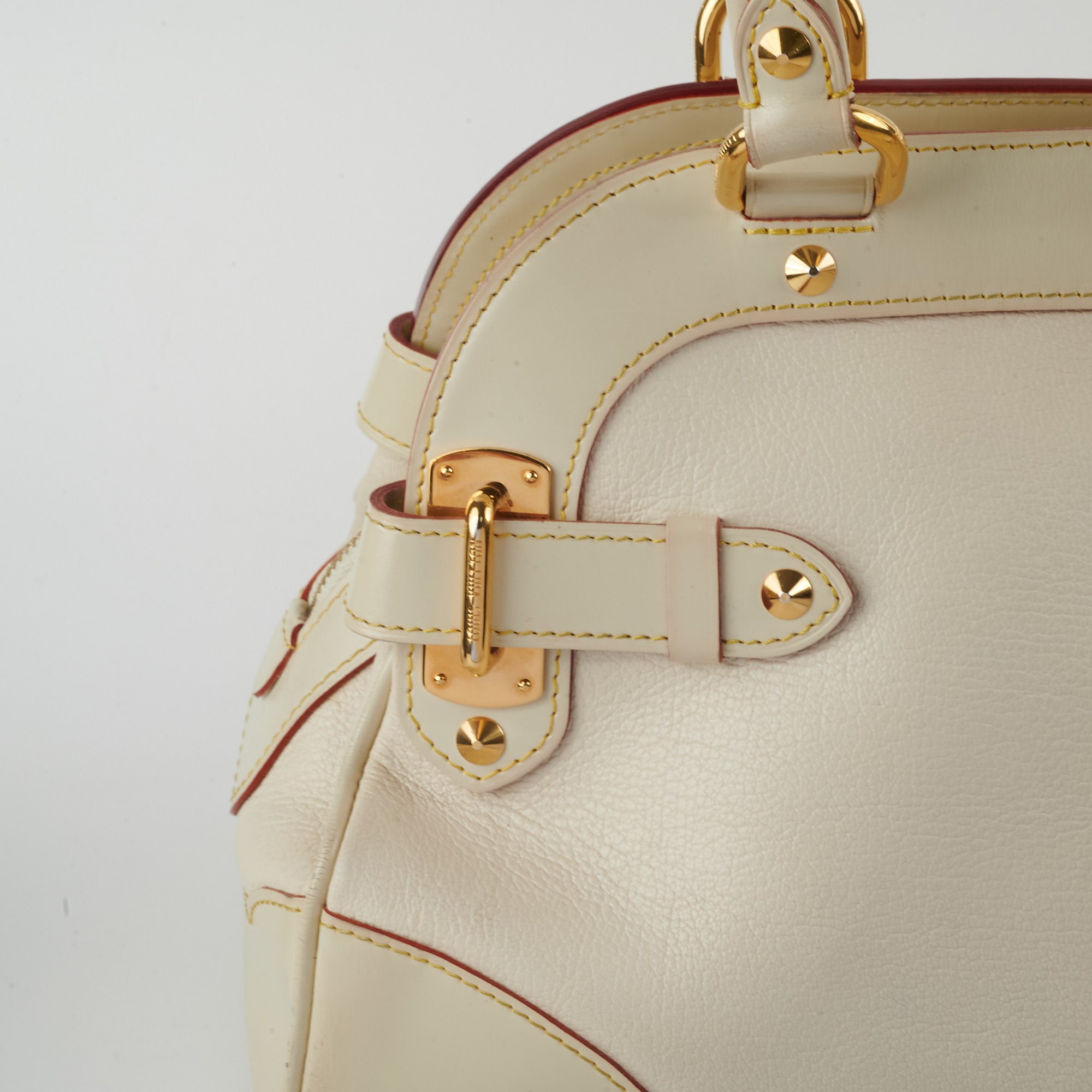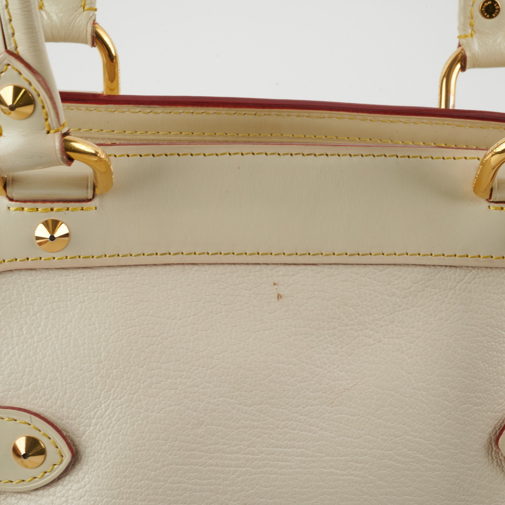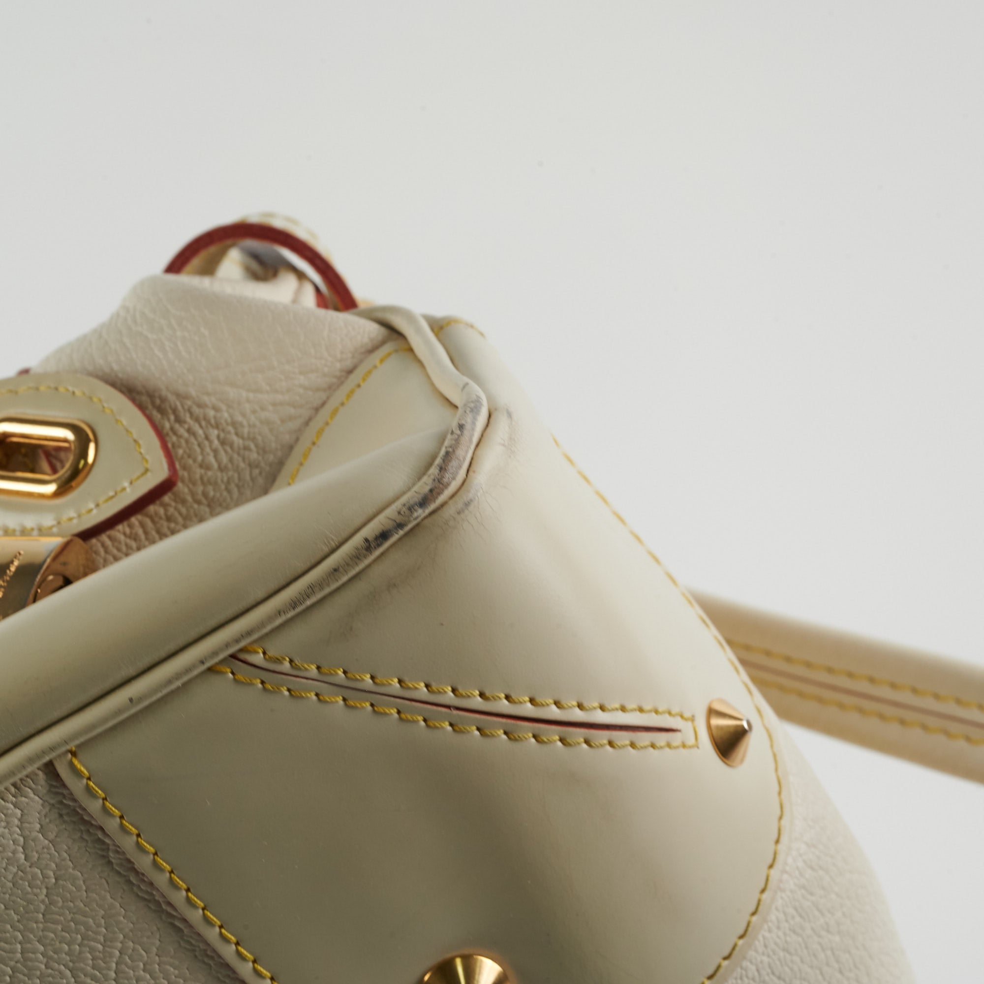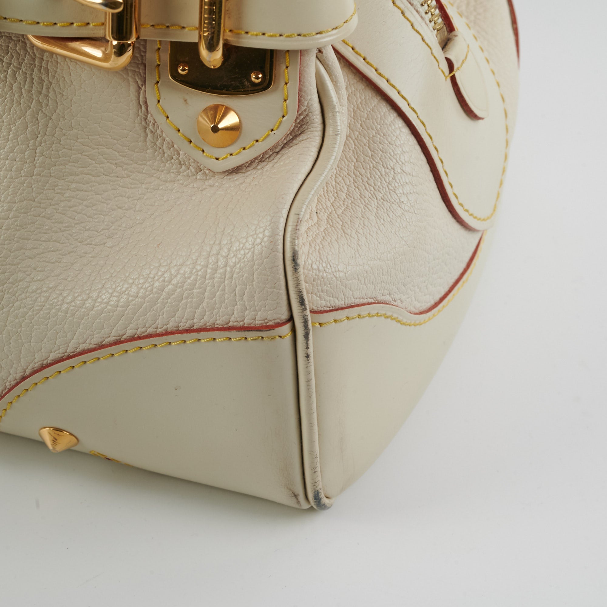 Rubbing/scuffing on corners, small marks and scuff on the leather, light marks on the interior, wear on the base of the handles
